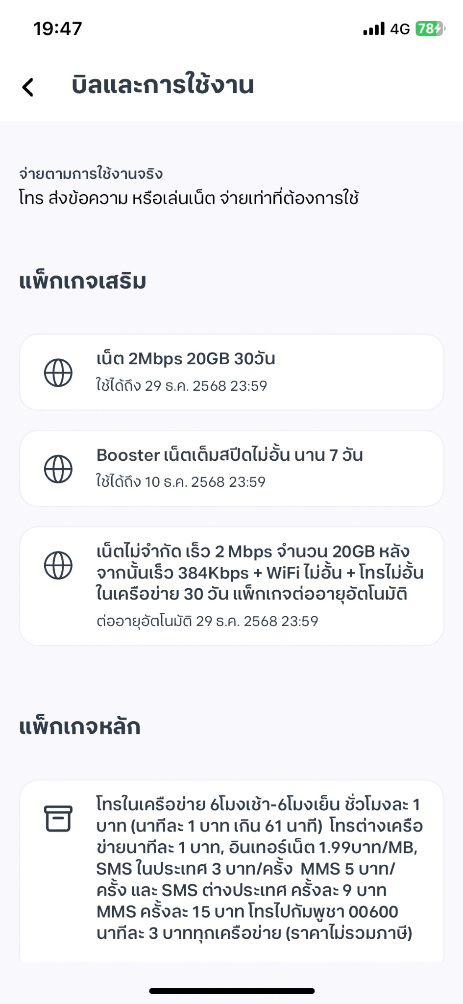 จากที่เห็นแพ็คหลัก2Mbps 20GBเราใช้แพ็คเกจหมดแล้วต่อมาซื้อBoosterเต็มสปีดไม่อั้นแล้วมันยังใช้เน็ตแพ็จเกจหลักอยู่ทำยังไง