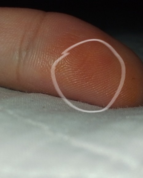 เร◌าใช้คัตเตอร์เกลี่ยสี แล้วใช้นิ้วโปงกดไปบนของคัตเตอร์ คัตเตอร์ไม่คม แต่ขึ้นสนิม แบบนี้เสียงบาดทะยักไหมคะ แดงๆคือเราทาเบตาดีนไปรอยๆที่เราวงไว้ เรารู้สึกเจ็บนิดเดียวเวลากดไปที่นิ้วโป้งที่เป็นรอย เรากดที่คัตเตอร์ประมาณเกือบ10นาทีได้ ไม่มีเลือดไม่มีแผล แต่เห็นรอยชัดอยู่ กว่าจะไปล้างแผลก็เกือบ15นาที