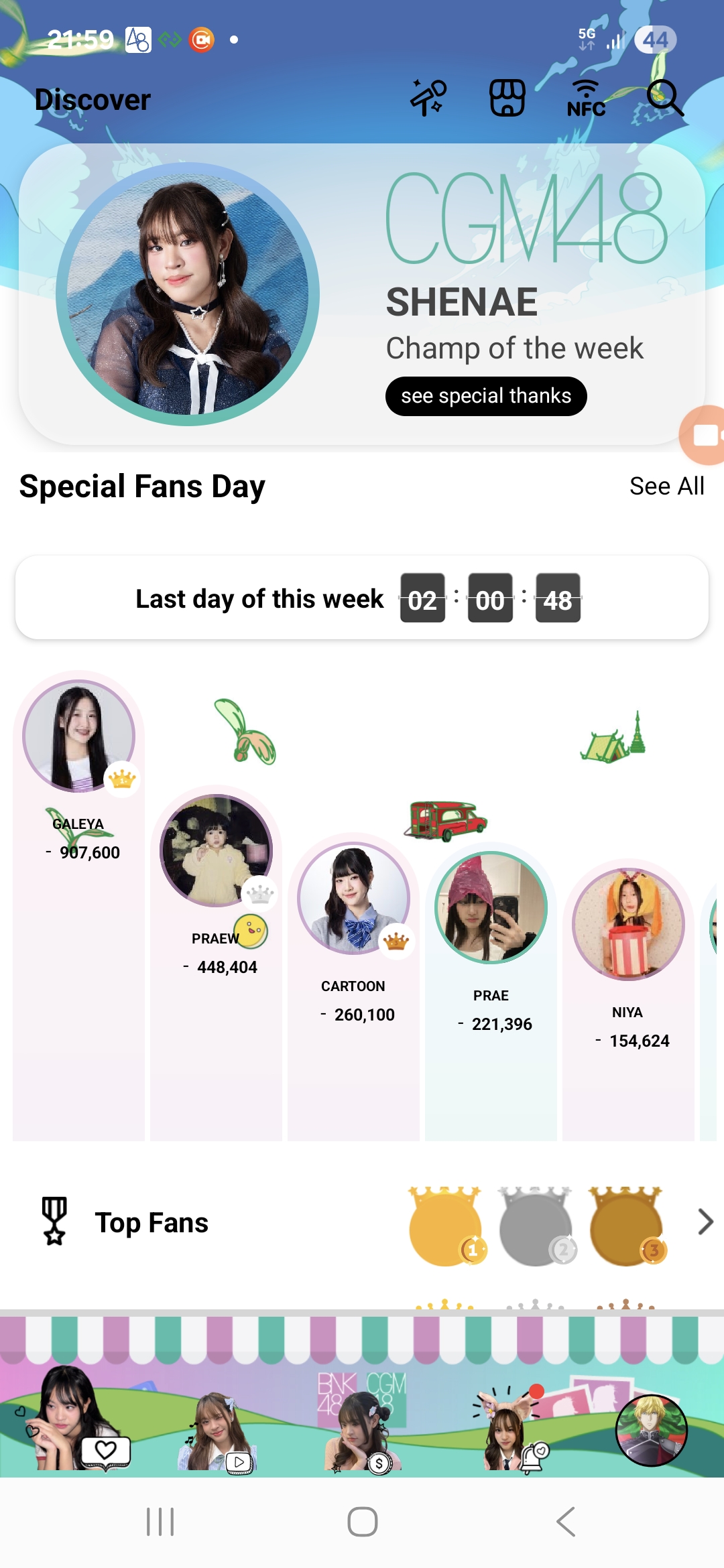 แชมป์ประจำสัปดาห์นี้ ชีเน่ CGM48.และขึ้นแท่นรออยู่ ตอนนี้ตือ นางฟ้าเกลญ่า บวกกับ ป้ายวันเกิดถึงเทียร์,3