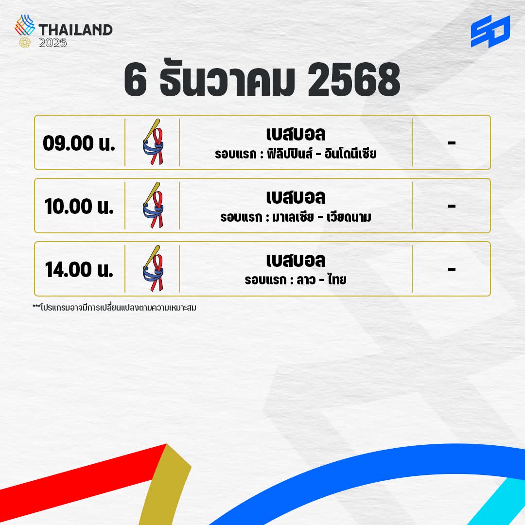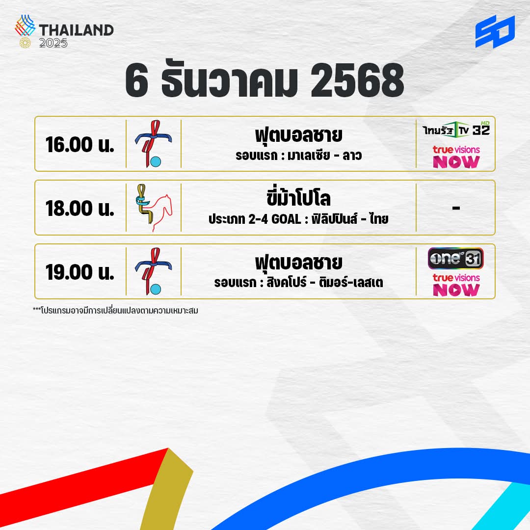 โปรแกรมการแข่งขันซีเกมส์วันที่6ธ.ค