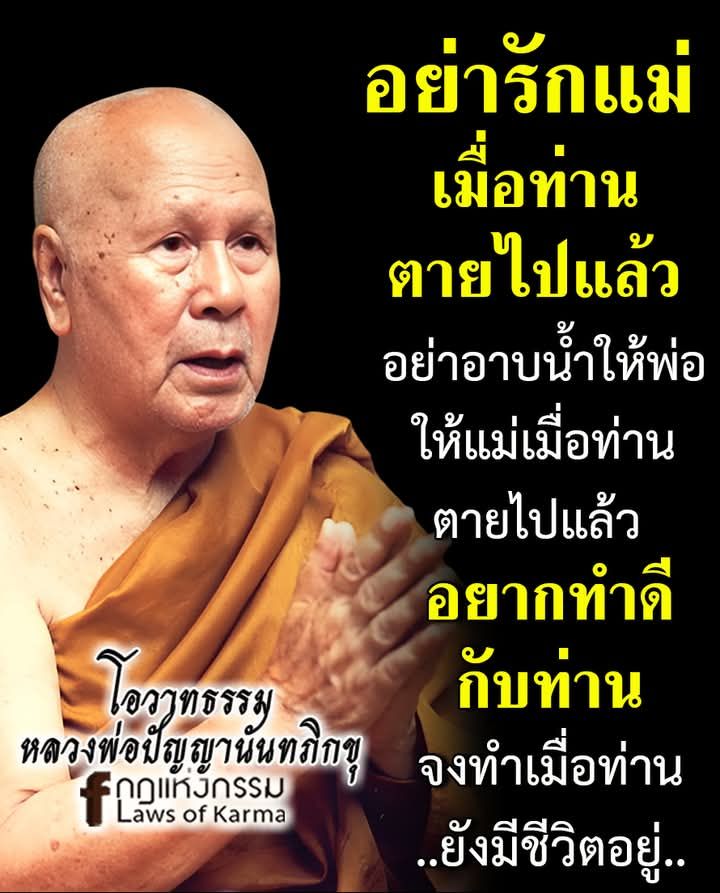อย่ารักแม่เมื่อท่านตายไปแล้ว อย่าอาบนํ้าให้พ่อเมื่อท่านตายไปแล้ว อยากทําดีกับท่านให้ทําตอนที่ท่านยังมีชีวิตอยู่