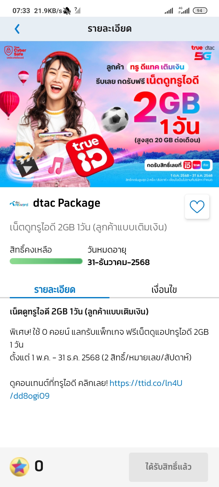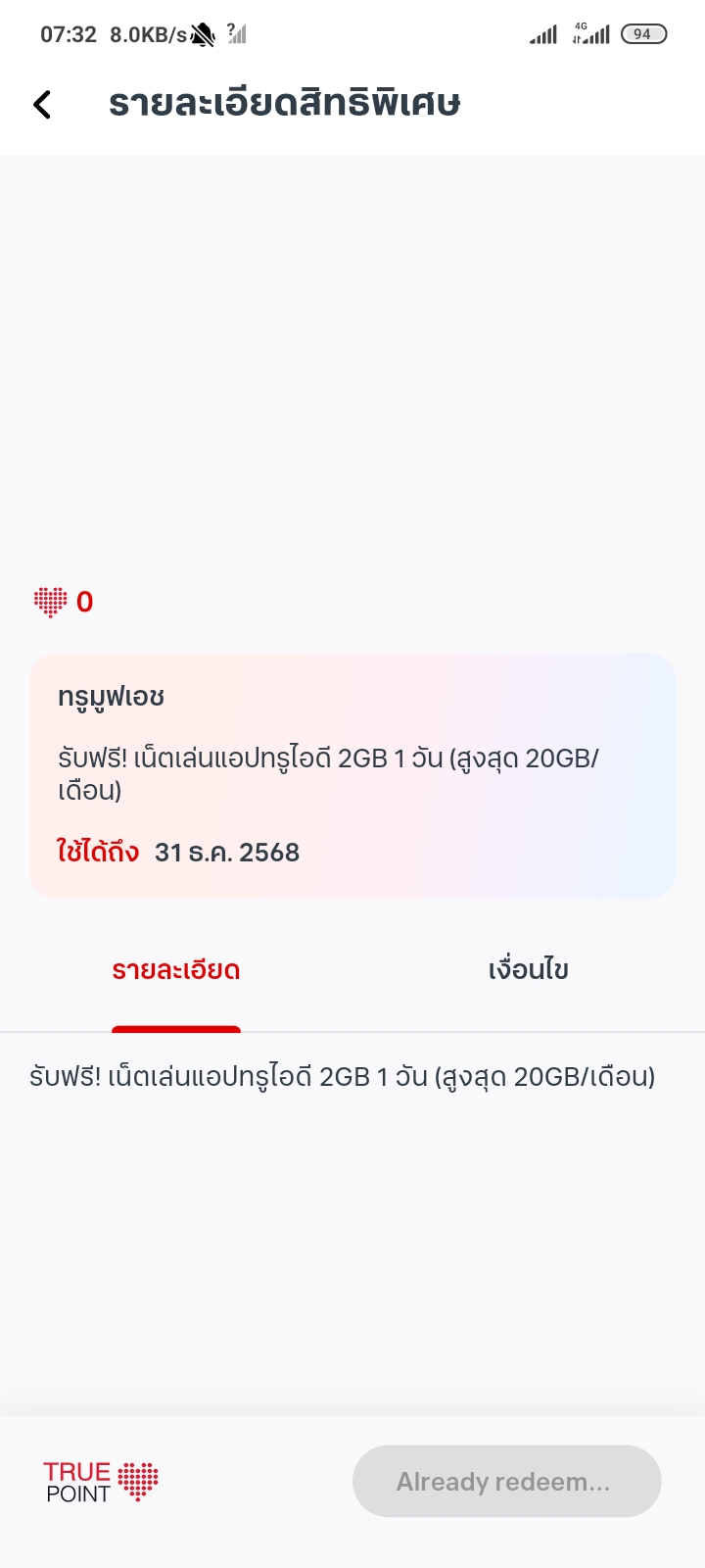 ตั้งแต่ต้นเดือน แลกเน็ตดู True ID ประมาณ 1 ครั้ง และแลกไม่ได้อีกเลย