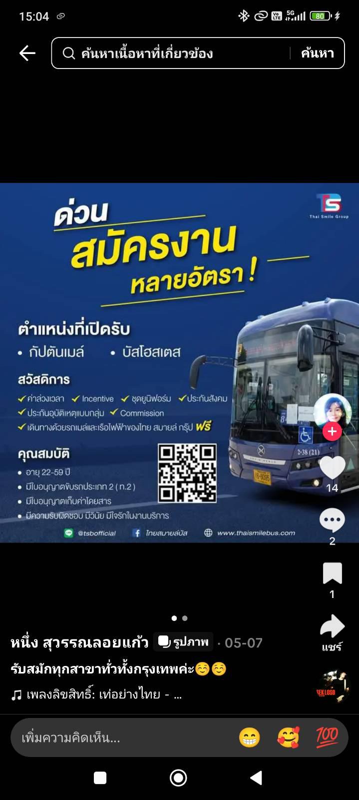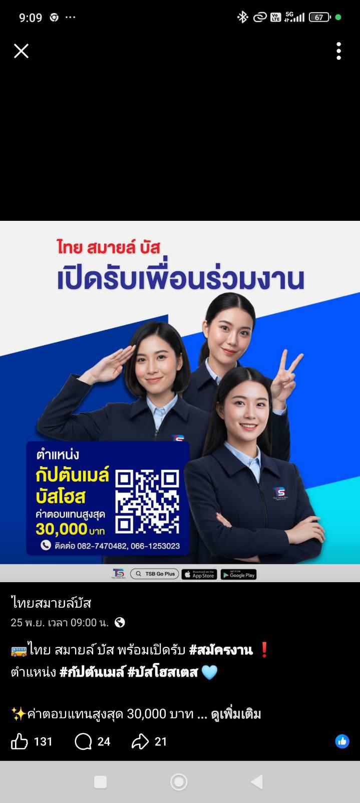 สนใจงานกัปตันเมล์ ไทยสมายล์บัส