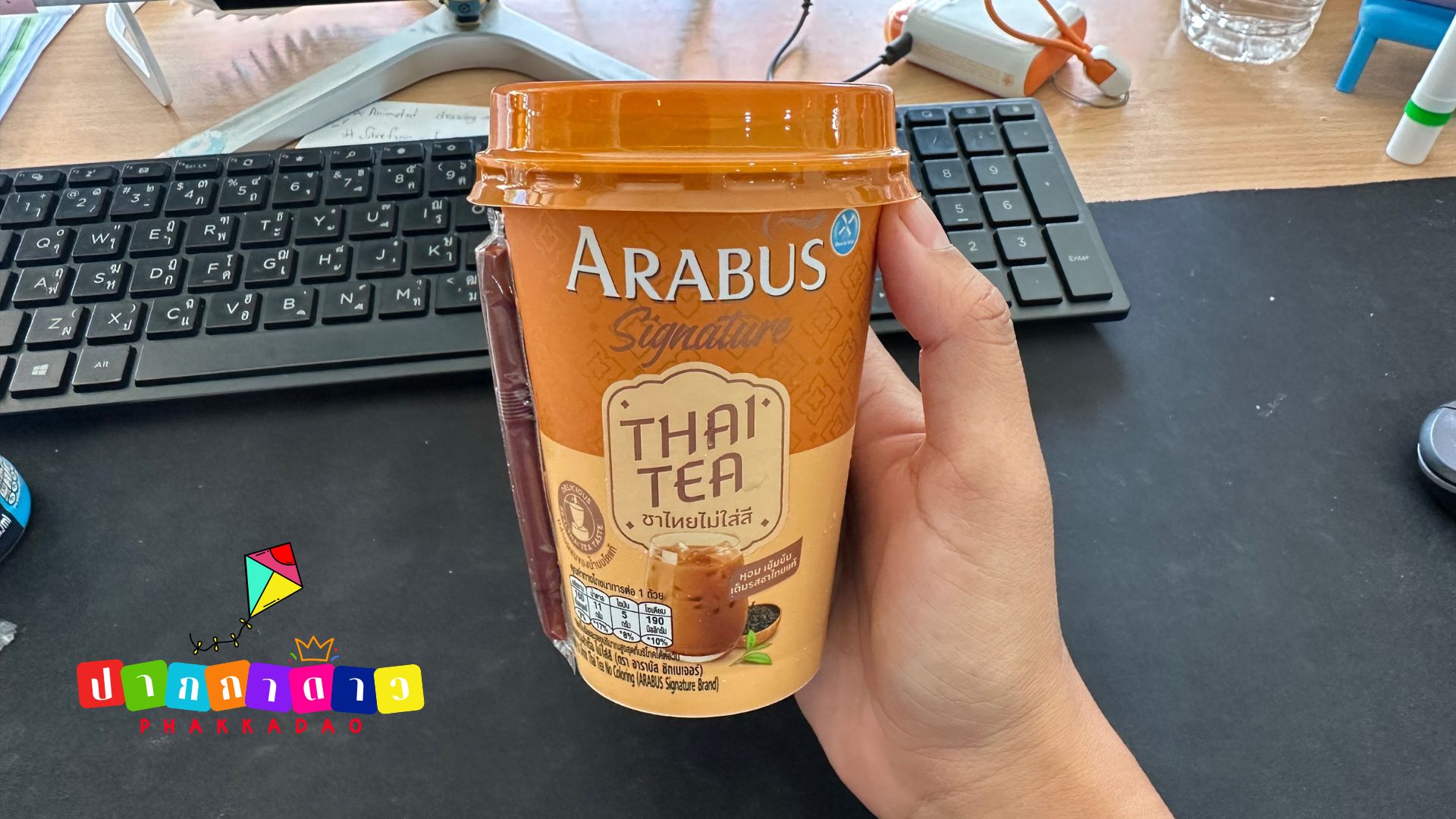 ปกติเราจะคุ้นเคยกับแบรนด์ Arabus ในฝั่งกาแฟใช่ไหมคะ แต่นี่เขาทำ "ชาไทย" ออกมา แถมหน้าแก้วเคลมตัวโตๆ ว่า "ชาไทยไม่ใส่สี" (Thai Tea No Colouring) ... ความสงสัยทำงานทันทีคะ ว่าชาไทยที่ไม่มีสีส้มแสด รสชาติมันจะยังเป็นชาไทยอยู่ไหม? เลยจัดมา 1 แก้ว ในราคา 39 บาท แล้วมาพิสูจน์กันชัดๆ ไปเลย