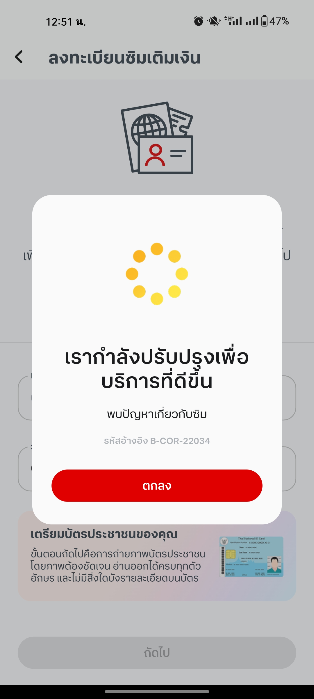 ลงทะเบียนซิมทรูผ่าน app ไม่ได้ต้องทำยังไงครับ