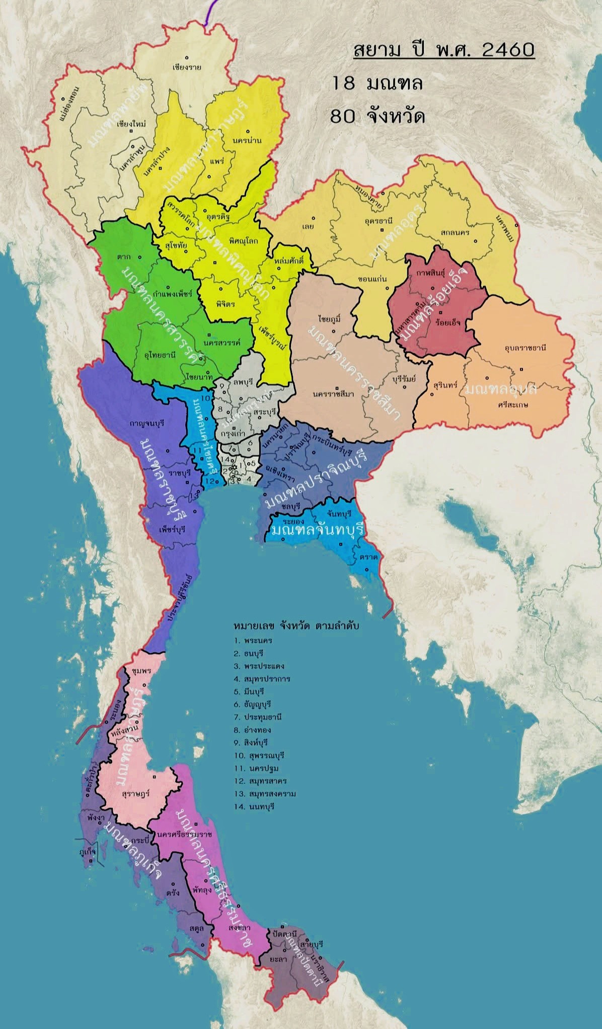 รู้หรือไม่ว่า สยามเมื่อปี พ.ศ. ๒๔๖๐ เคยมีถึง ๑๘ มณฑล รวม ๘๐ จังหวัด