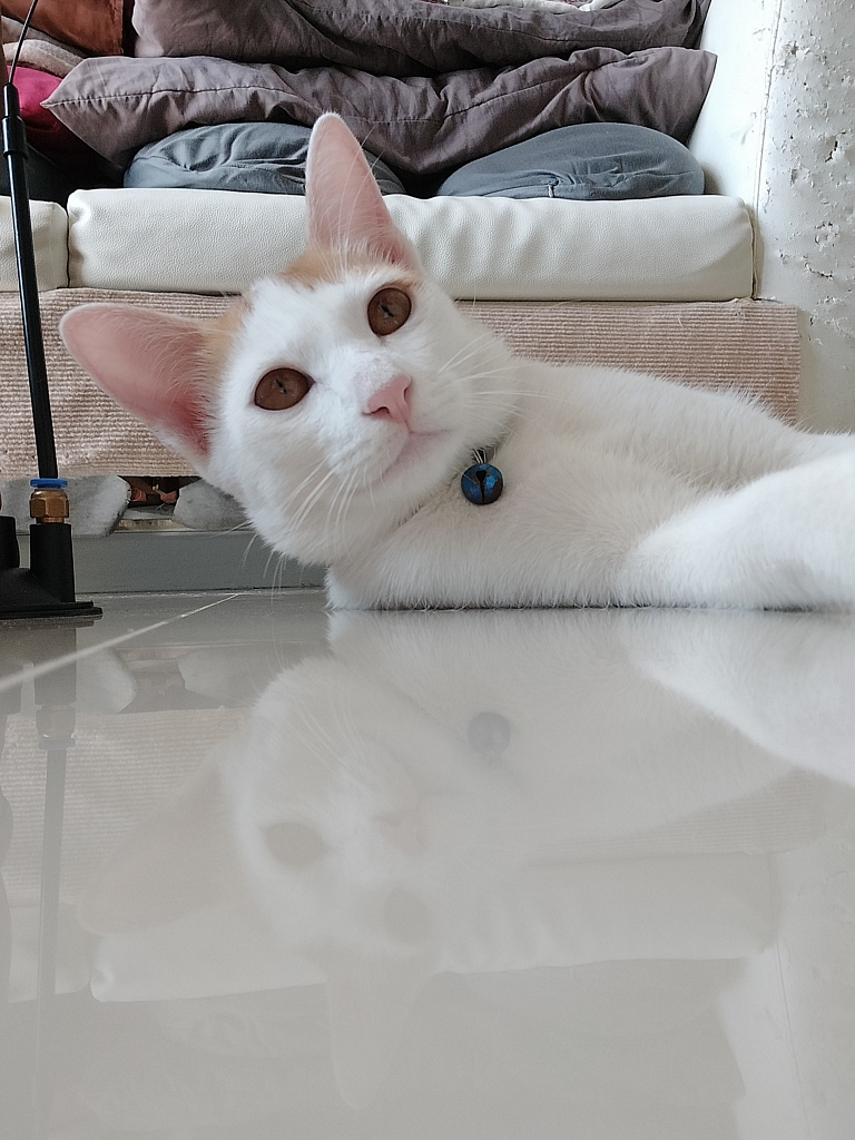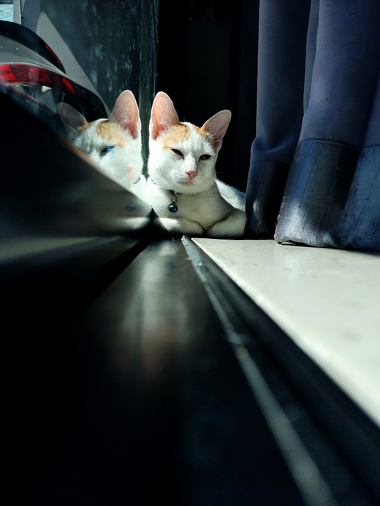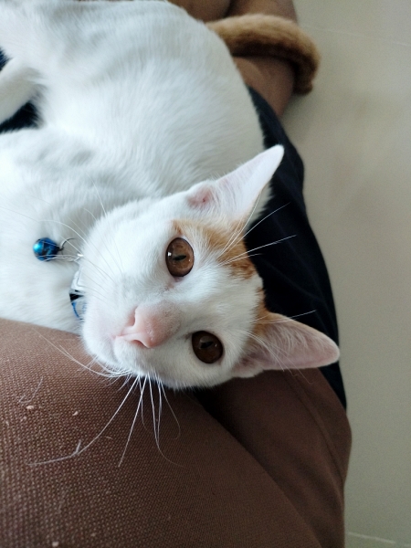 อ้างอิงวันที่ 21/11/2568 ผมไปเจอแมวจรตัวหนึ่งนั่งร้องและมองหน้า เอาแล้ว..จ้าวกัมตัวใหม่มาแล้ว ลองเล่นด้วยก้อเป็นไปตามแผน สุดท้ายสอยขึ้นรถมาอยู่บ้านเลย น้องแมวอายุประมาณ 4 เดือน ขี้อ้อน(จนกระดิกตัวไปไหนก้อตาม) โชคดีที่สองตัวที่บ้านรับได้ก้อเลยสบายใจหน่อย