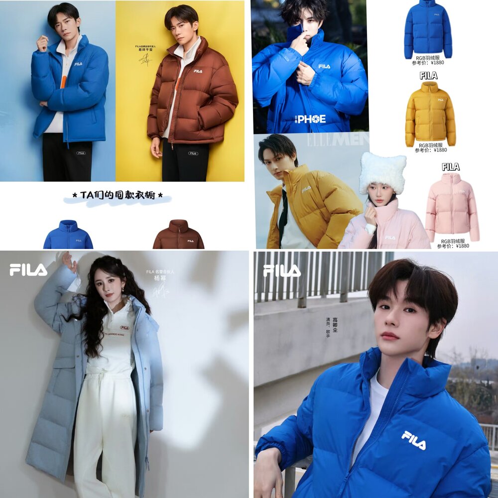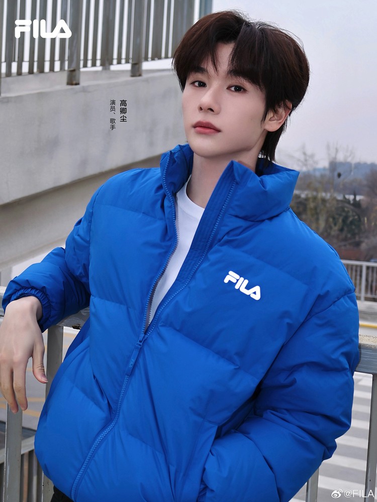 เกาชิงเฉิน เสียวจิ่ว (高卿尘 Nine) ศิลปินนักร้องนักแสดงจากประเทศไทย โดยได้โพสภาพภาพถ่ายกำกับไว้ด้วยว่า " นักแสดงและนักร้อง #高卿尘Nine สวมเสื้อแจ็คเก็ตดาวน์ FILA RGB สีฟ้าสดใสช่วยเพิ่มความสดใสให้กับลุคฤดูหนาว สร้างสรรค์สไตล์ที่ดูสะอาดตาและอ่อนเยาว์ "