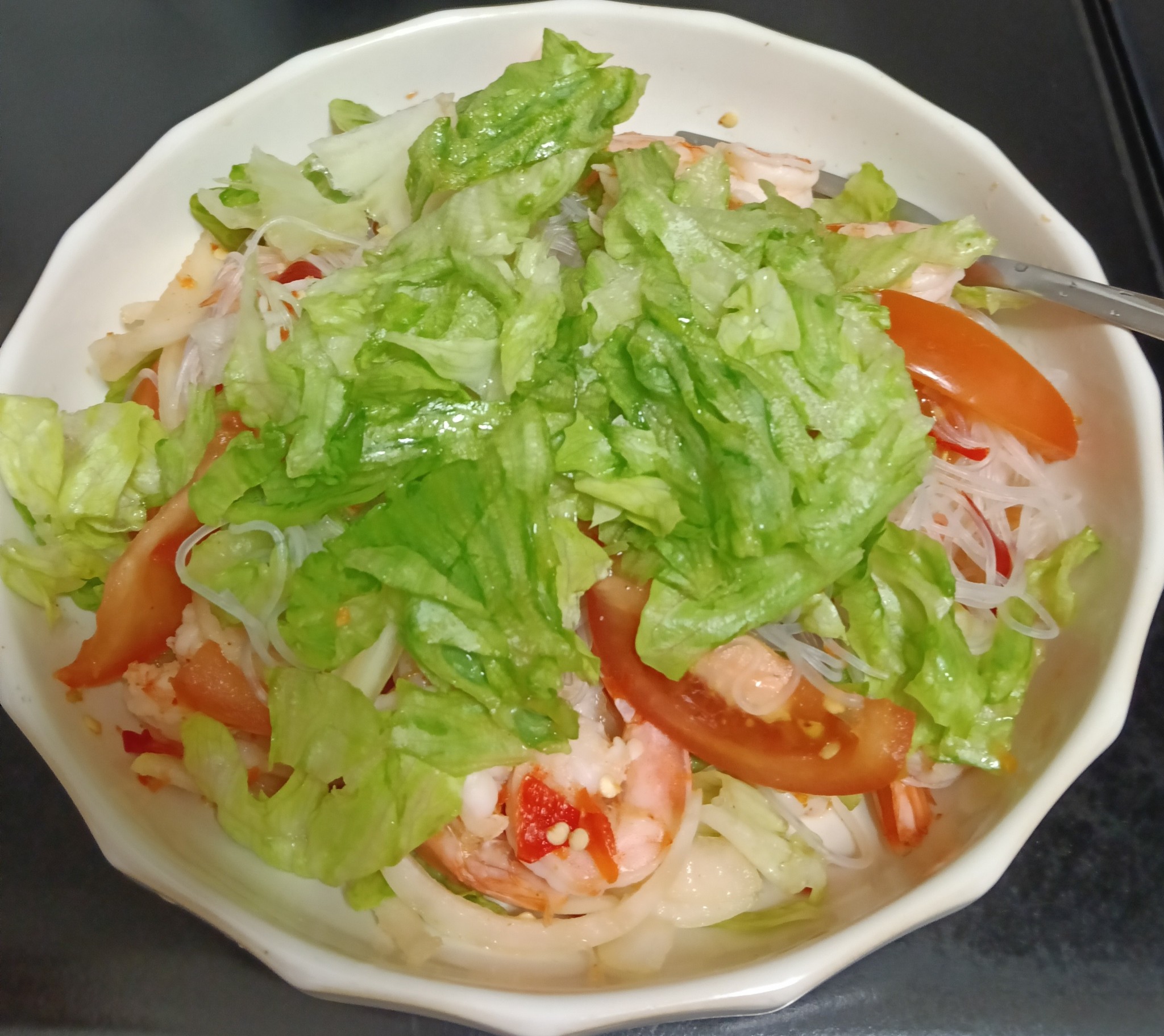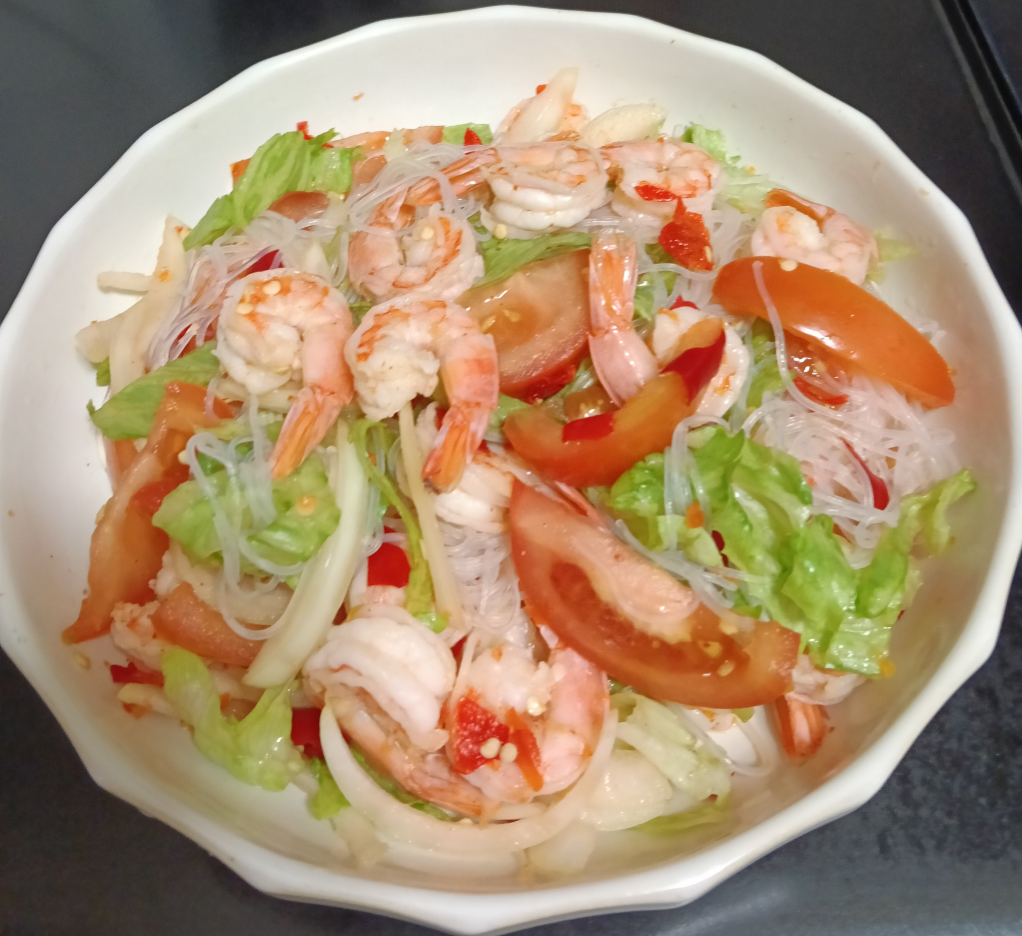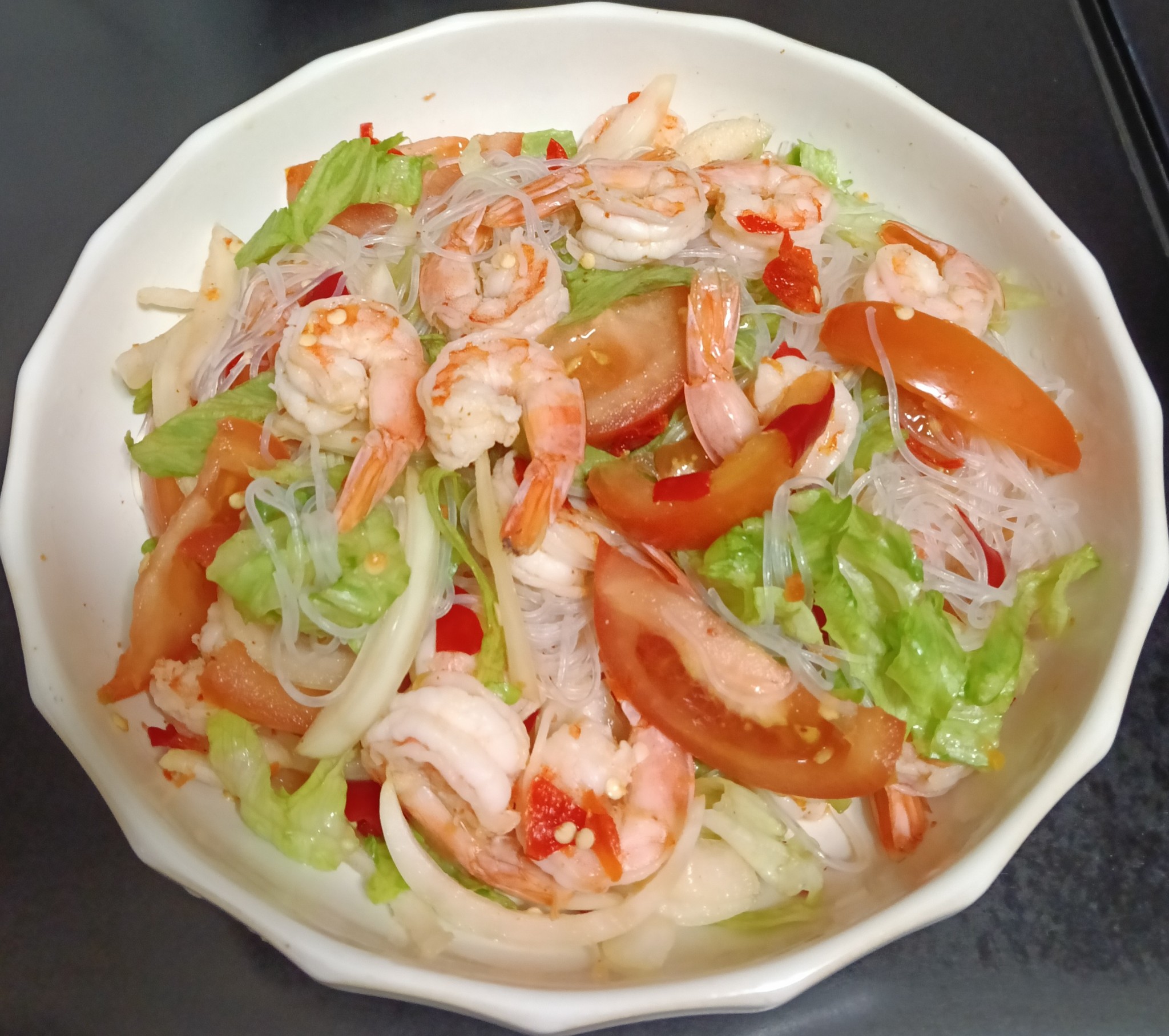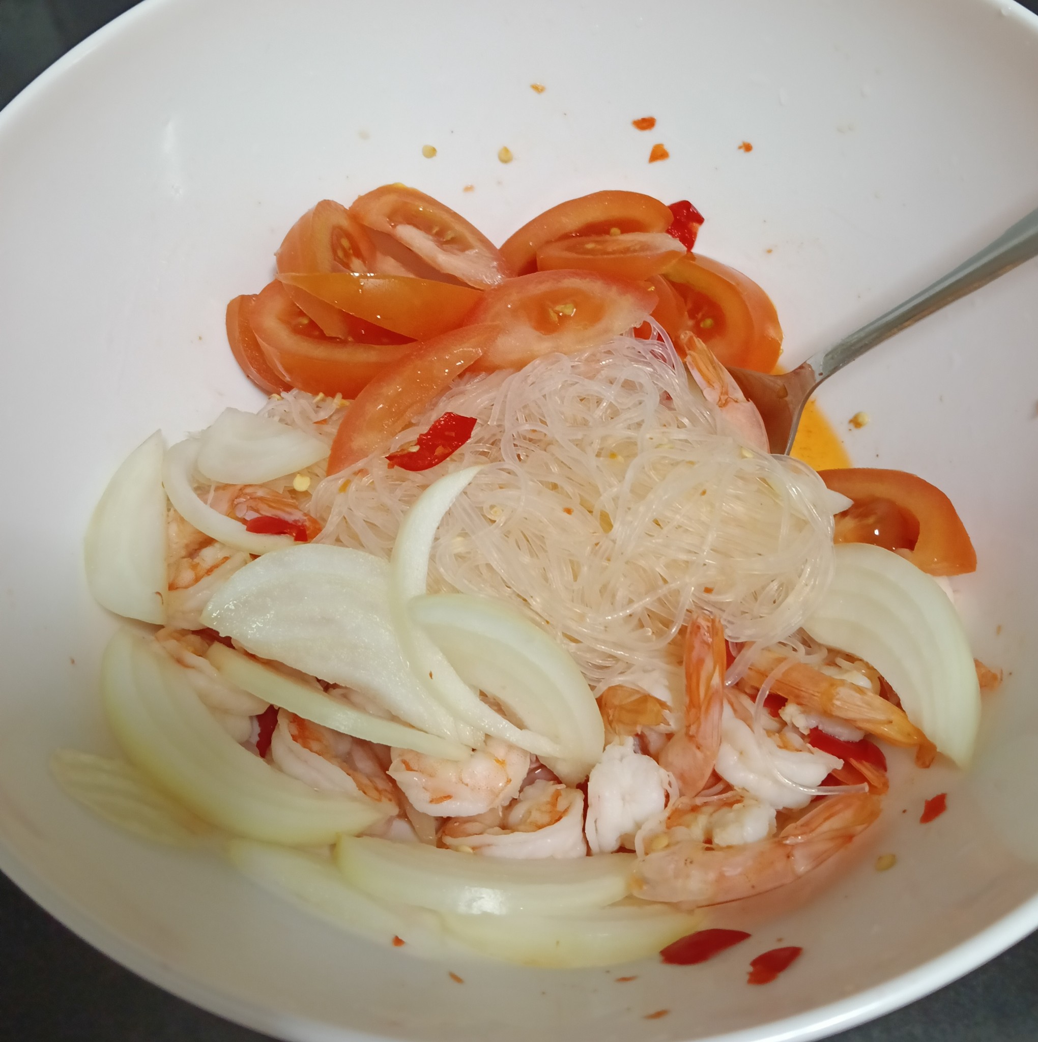 "ยำวุ้นเส้นกุ้ง"🍴🍽️🍚🍤🍤🍤🍤🌶️🌶️🌶️🌶️🌶️🥣