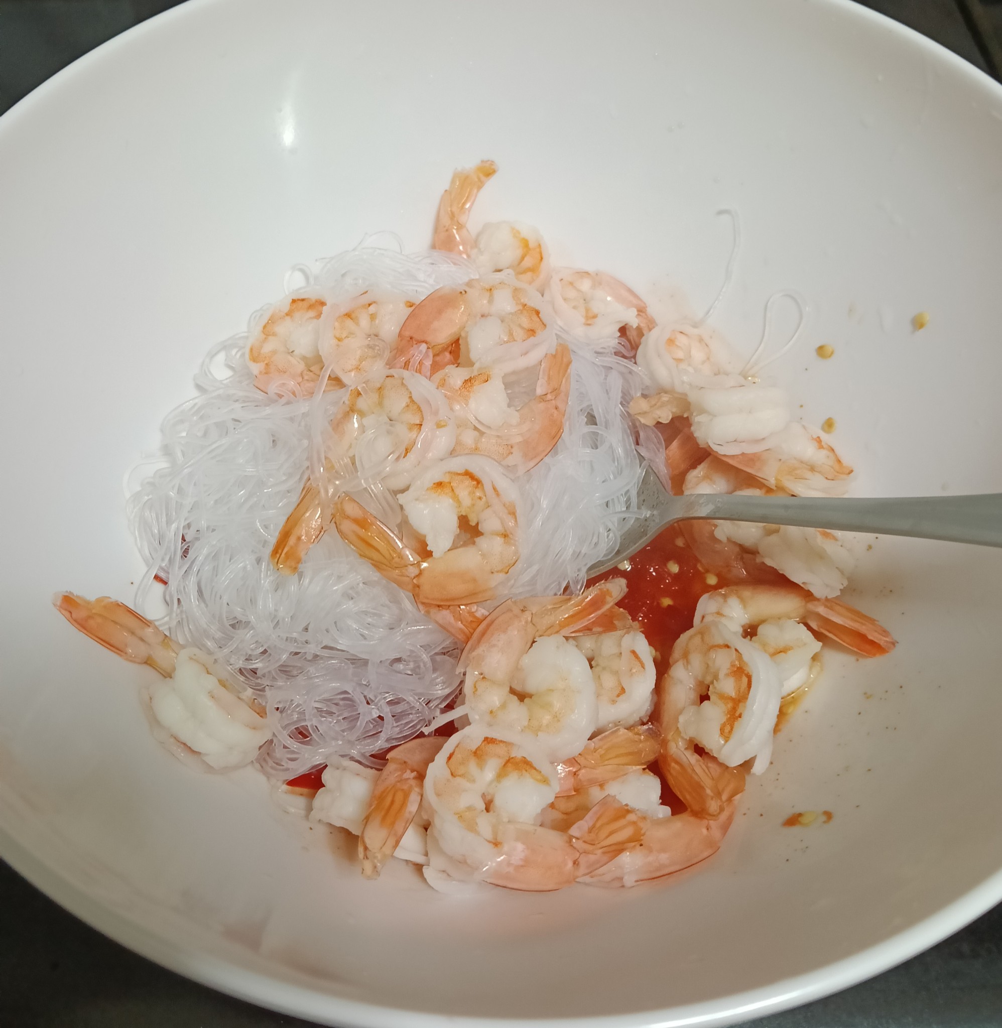 ชิมดูรสชาติถ้าถูกใจแล้วก็ใส่วุ้นเส้นลงไป ตามด้วยกุ้ง หอมใหญ่ มะเขือเทศ ผักกาดแก้ว คนให้เข้ากันก็เป็นอันเสร็จแล้วร้อยพร้อมอร่อยแบบแซบๆแล้ว