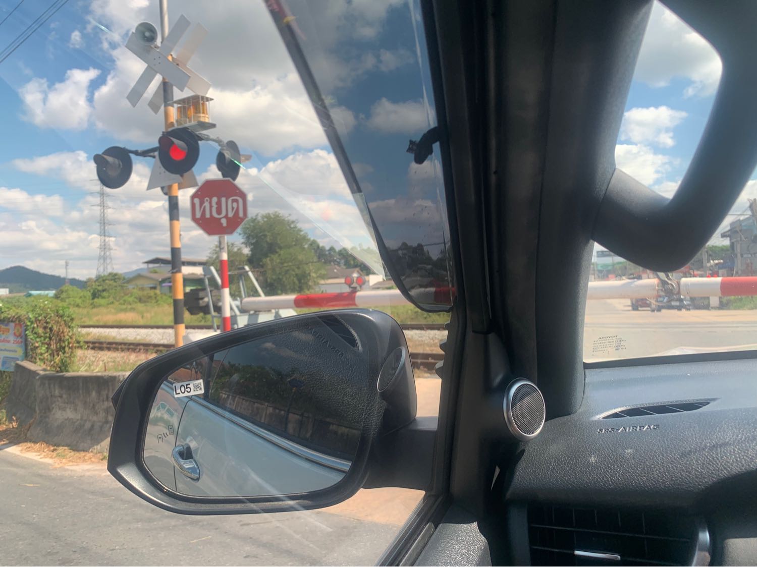 วันนี้ไม่วาย นั่งรถหรู ไม้กั้นทางรถไฟตกลงมาครอบ นึกว่าจะเสี่ยงรถไฟพุ่งมาแล้ว ดีเจ้าหน้าที่มากดปุ่มยกไม้ขึ้น
