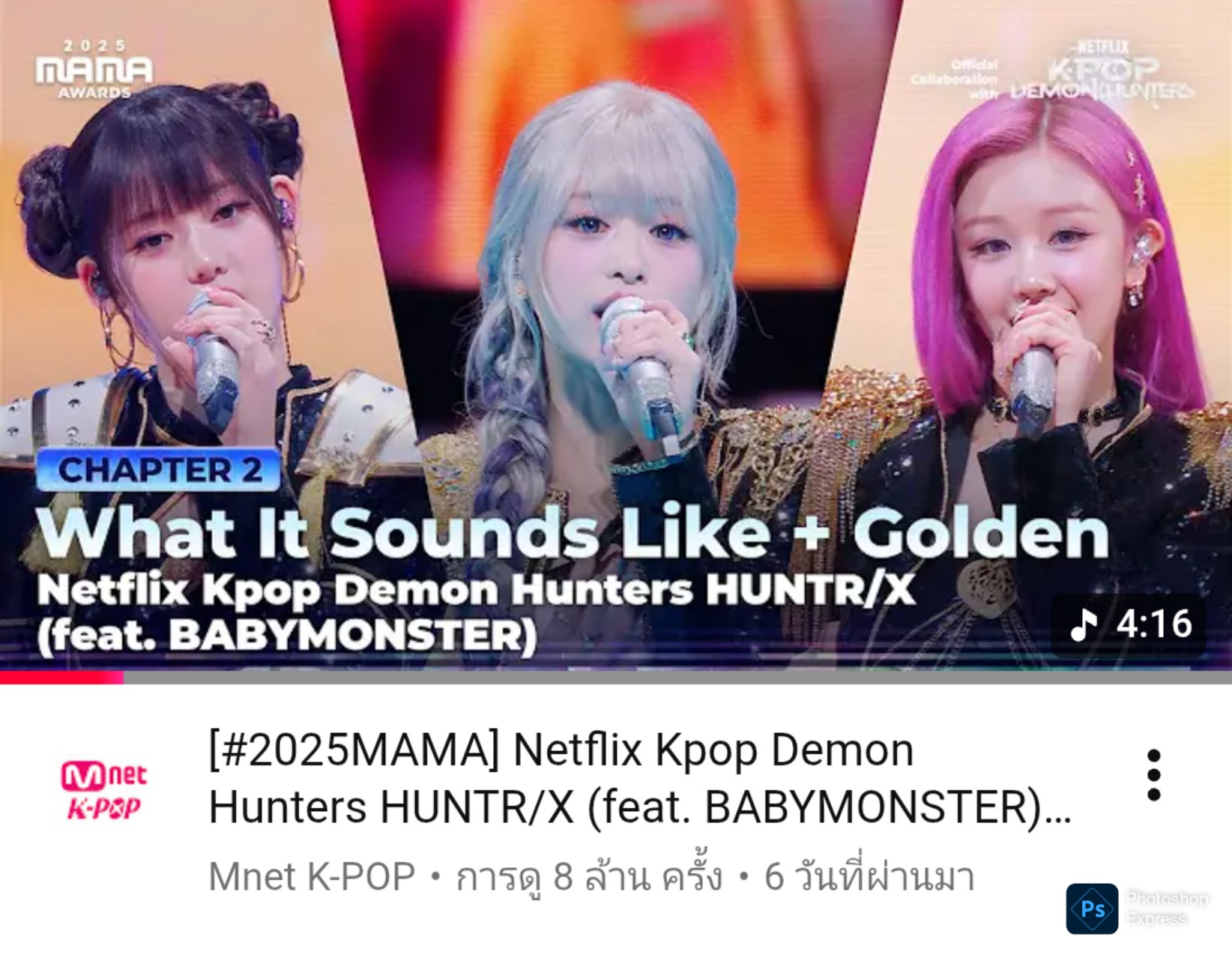 Netflix Kpop Demon Hunters HUNTR/X (feat. BABYMONSTER) มียอดวิว 8 ล้านวิวยังคงมียอดวิวเป็นอันดับ 1 ใน MAMA AWARDS 2025