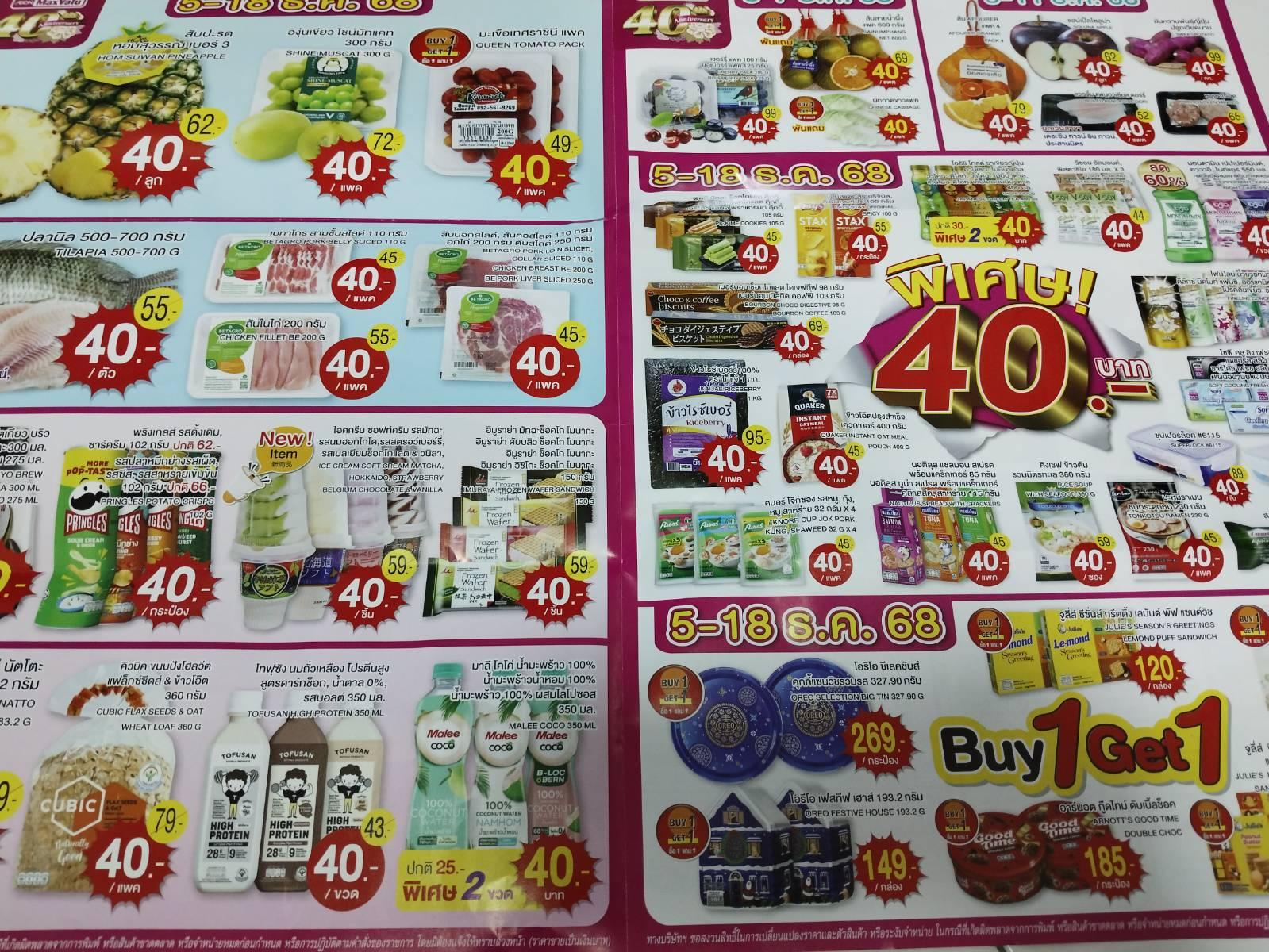 หยุดยาวอยู่ กทม แวะไปช้อป ซุปเปอร์มาร์เก็ตใกล้บ้าน เจอโปรโมชั่น ฉลอง 40 ปี สินค้า 40 บาท เยอะมากครับ