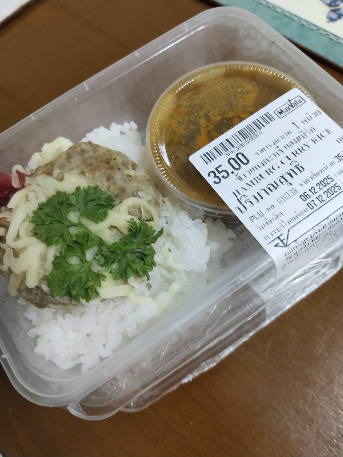 ข้าวกล่อง แฮมเบอร์เกอร์กับแกงกระหรี่ญี่ปุ่น 35.- จัดมาสองกล่องเลย