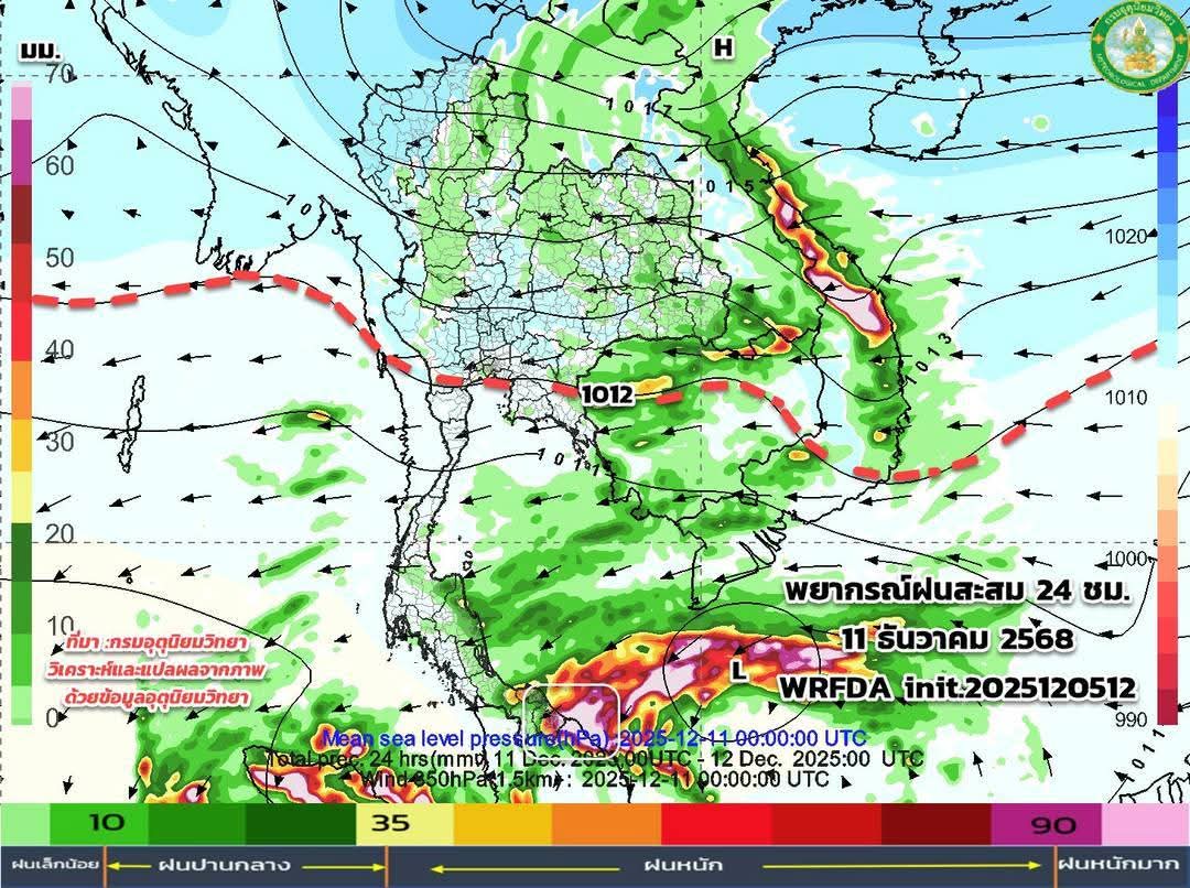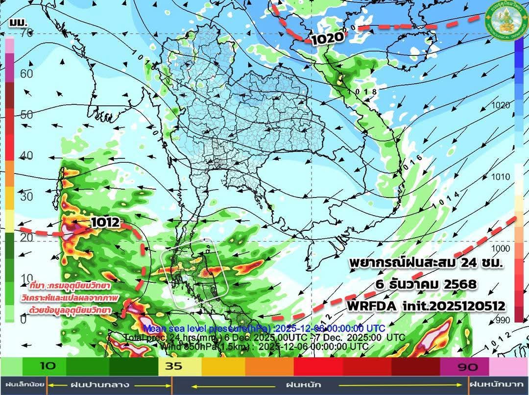 อัปเดตพยากรณ์ฝน–ลม–อากาศ 10 วันข้างหน้า 📅 6–15 ธ.ค. 68