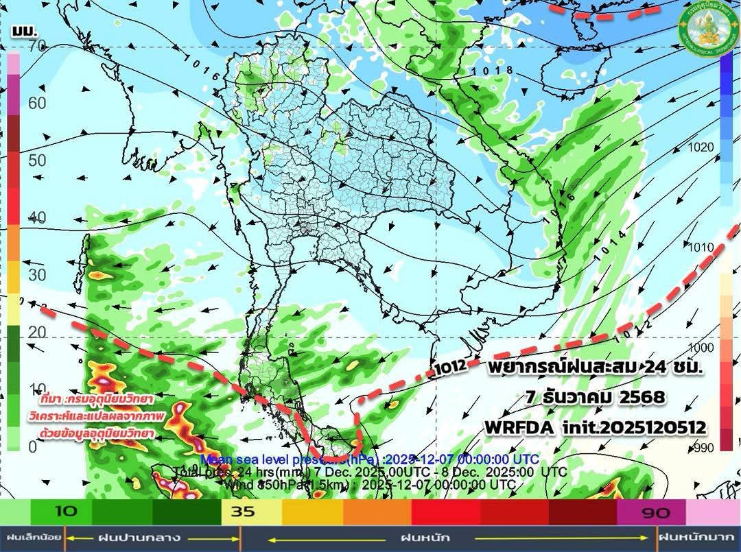 🌧️ ภาคใต้มีฝนบางแห่ง เป็นฝนตามฤดูกาล ไม่ต่อเนื่อง