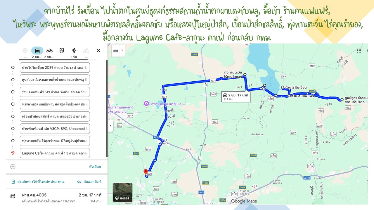 เช้าวันที่สองของการเดินทาง 02/12/2568 จากบ้านไร่ ริมเขื่อน แวะเที่ยวจุดต่างๆ ดังนี้