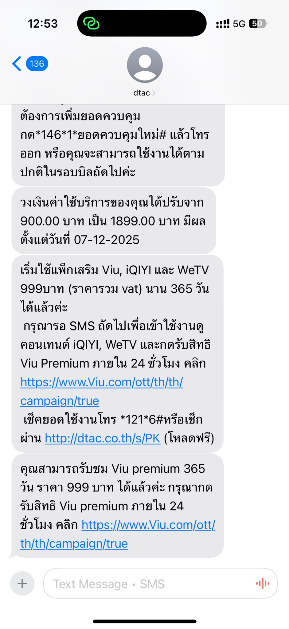 คือเราได้ไปกด *900*7129# ของ dtac ค่ะ ที่กดได้เพราะตอนแรกจะสมัคร netflix โดยตัดผ่านบิลรายเดือนแล้วมันตัดไม่ได้ก็เลยค้นหาในกูเกิ้ล แล้ว AI ของกูเกิ้ลบอกว่าให้กดเลขนี้เราเลยลองกด ปรากฏว่ากลายเป็นสมัครแอปดูหนังรายปีมาอีก 3 แอป 999 บาท เราอยากจะรู้ว่าถ้ายกเลิกไปแล้วจะไม่คิด 999 บาท ด้วยได้ไหม เพราะเรายังไม่ได้กดใช้งานในแอปเลยสักอัน แล้วแอปดีแทคก็ไม่สามารถกดยกเลิกเองได้โดยตรงก็ไม่เข้าใจเหมือนกัน