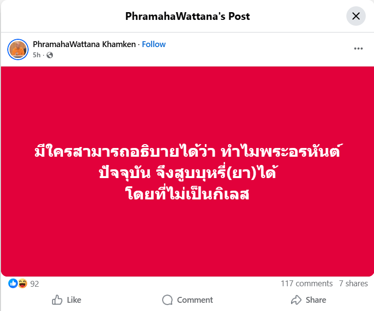ทำไมพระอรหันต์ปัจจุบัน จึงสูบบุหรี่(ยา)ได้ โดยที่ไม่เป็นกิเลส ?
