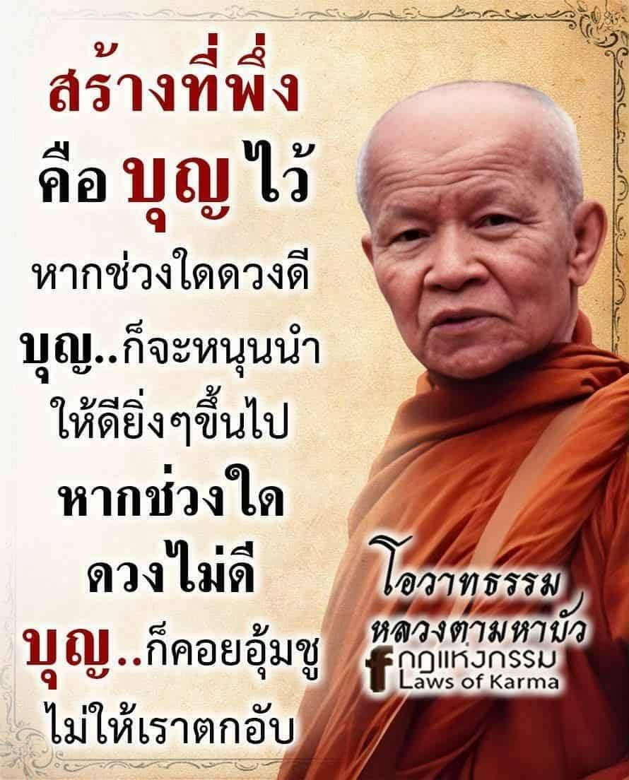 สร้างที่พึ่งคือบุญไว้หากช่วงใดดวงดีบุญก็จะหนุนนําให้ดียิ่งๆขึ้นไป หากช่วงใดดวงไม่ดีบุญก็จะช่วยให้เราไม่ตกอับ