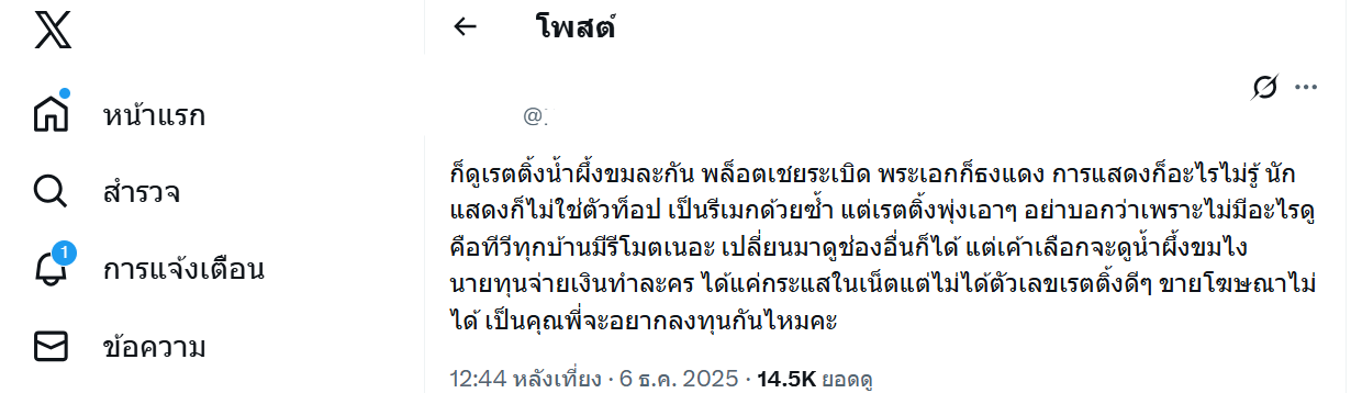 เรตติ้ง น้ำผึ้งขม สะท้อนว่าจริงๆ แล้วคนดูต่างหากที่ไม่ไปไหน?