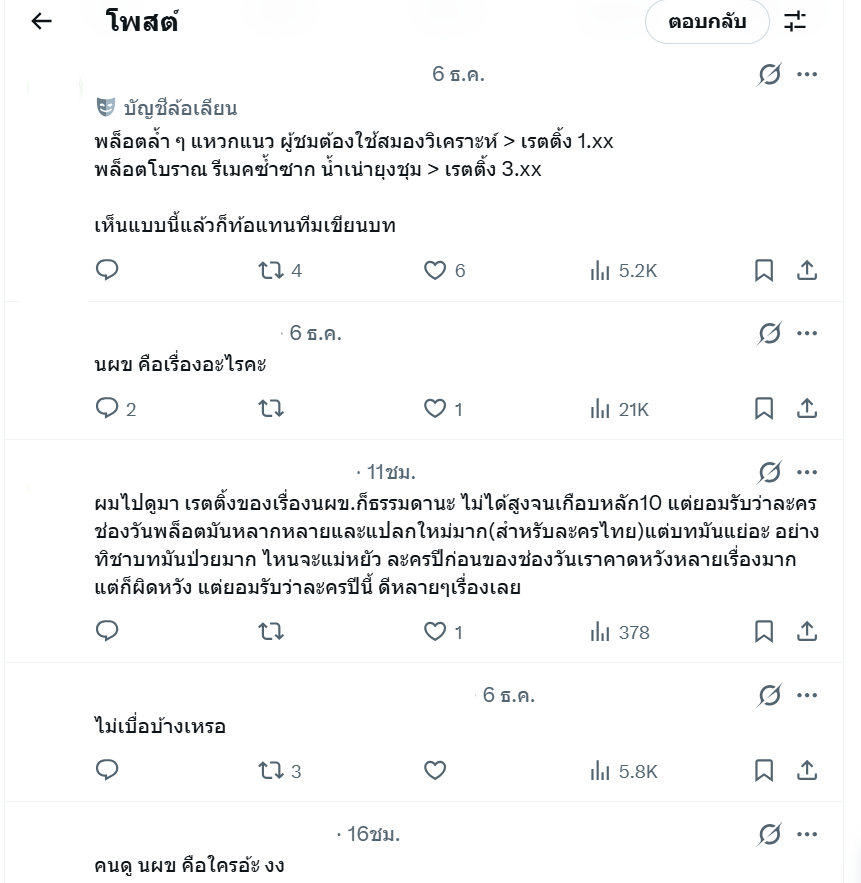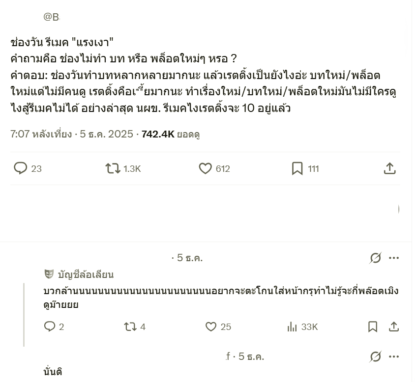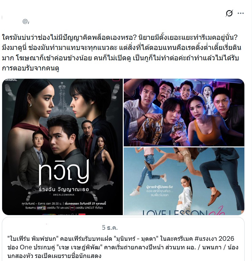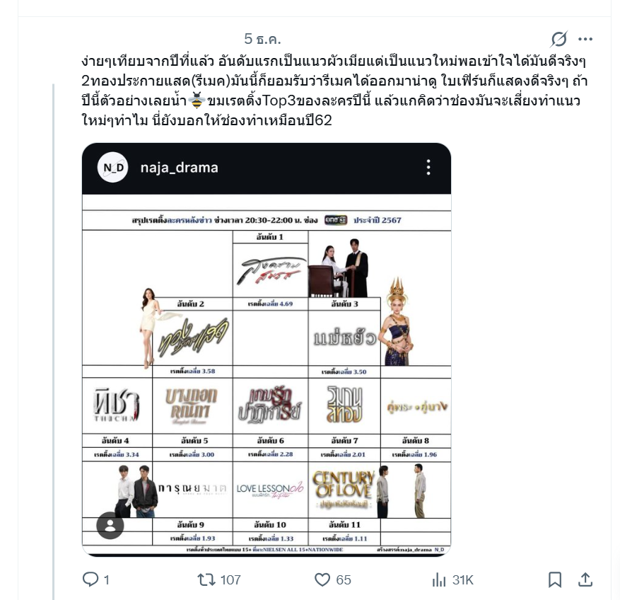 ตามหัวข้อกระทู้เลย ตอนมีข่าวจะรีเมคกระแสกร่นด่าว่ารีเมคไปทำไม แต่สุดท้ายกลายเป็นละครเรตติ้งสูงสุด top5 ของปีสรุปคนดูในยุคนี้ต้องการอะไรกันแน่ ในเมื่อละครที่ถูกเคลมไว้ว่า 'อะไรใหม่ๆ' 'น้ำดี' กลับเรตติ้
