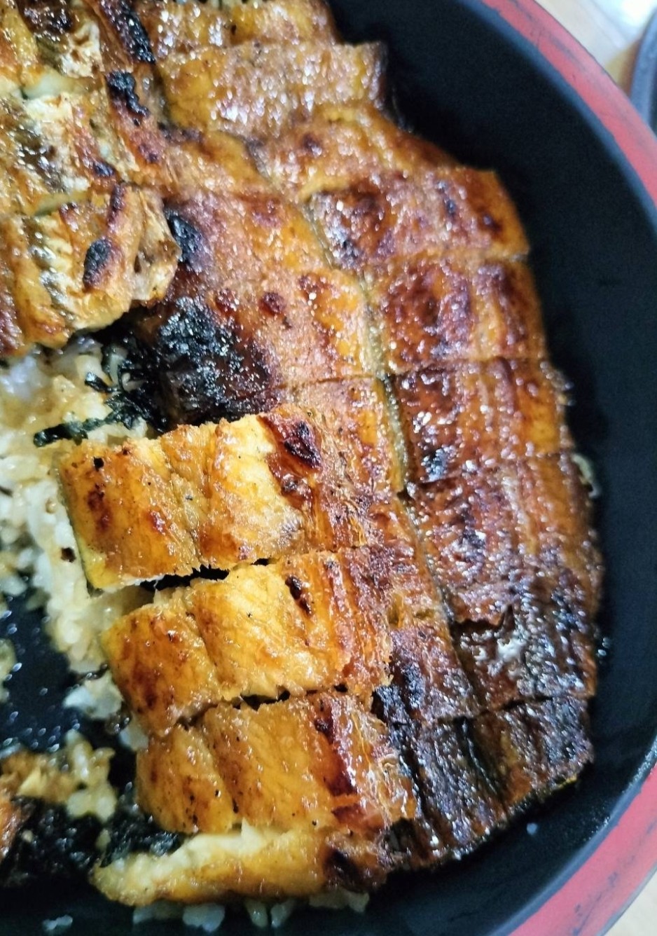 ประมาณว่าแบ่งข้าวหน้าปลาไหลย่างออกเป็นสี่ส่วนแล้วหม่ำๆๆ