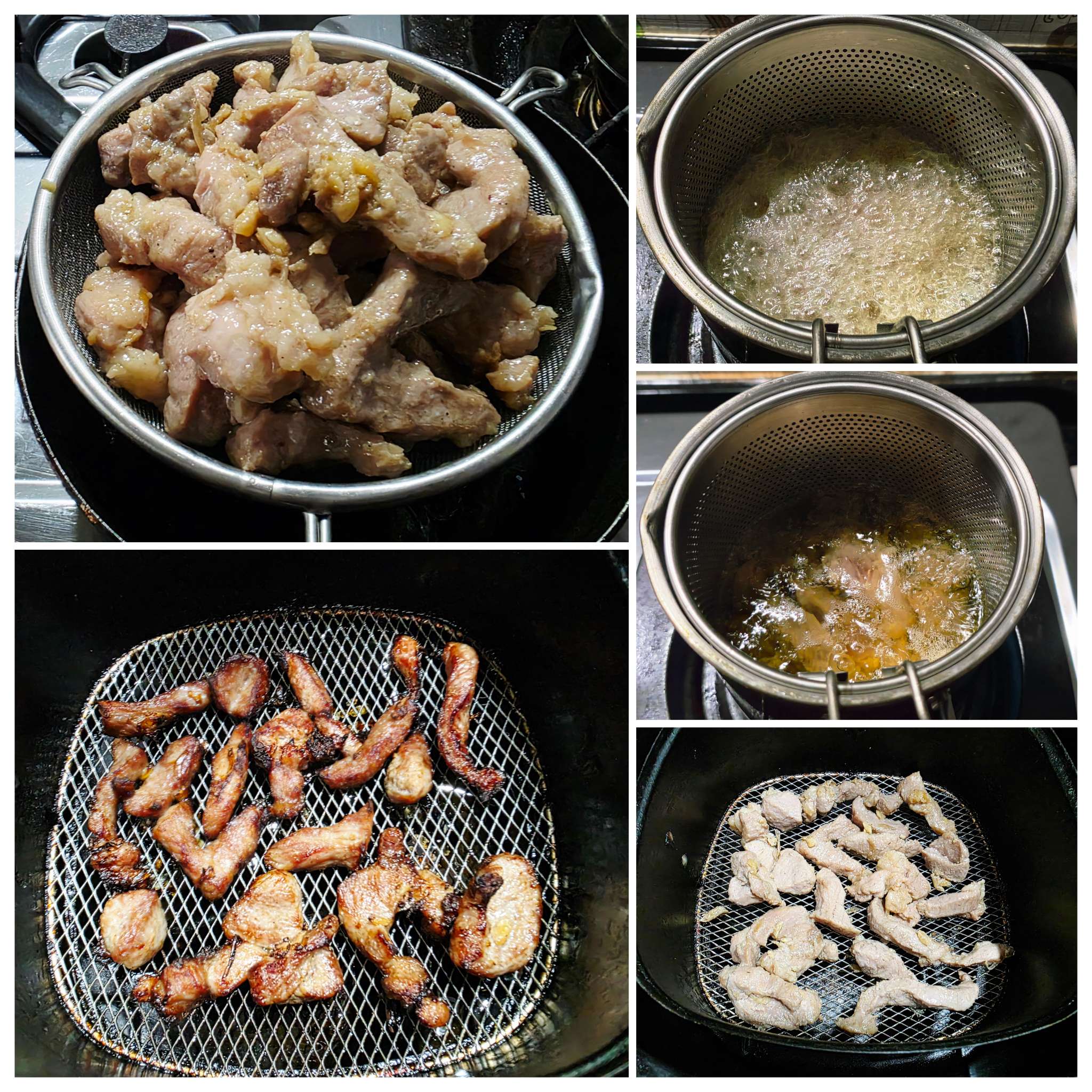 หากทอดต้อง 2 รอบ หรือรอบสอง ทำด้วยหม้อทอดไร้น้ำมันดีสุด แต่หากจะใช้หม้อทอดไร้น้ำมันรอบเดียว ต้องเอาน้ำมันพืชใส่ลงไปหมักด้วย