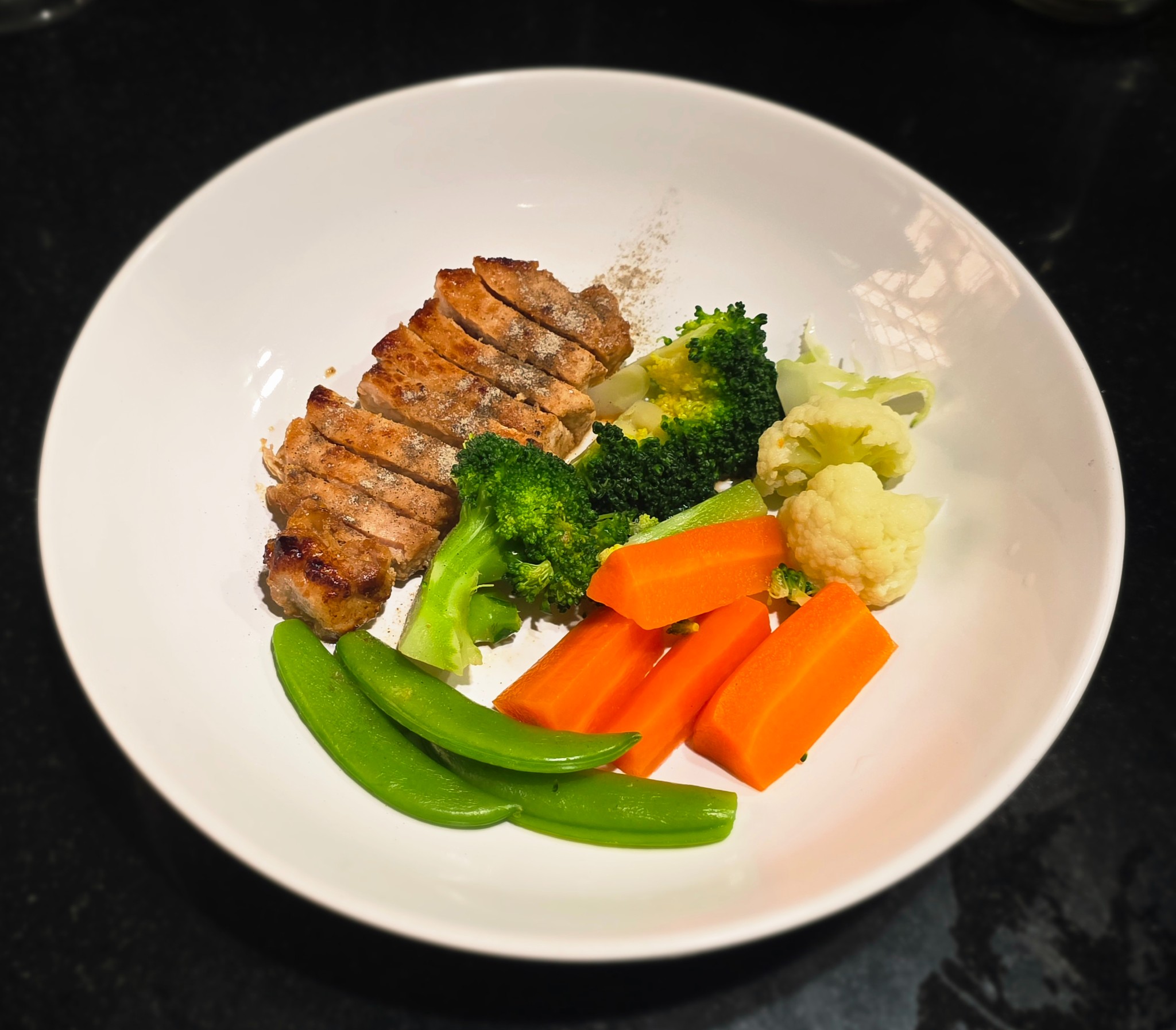 หมูทอดน้ำปลา & สเต็กหมู🐷🧄กับส้มตำและผัก 🌶️🥒🥭🍅🍋🥦🥬🥕เป็นเครื่องเคียง เมนูง่ายๆ สำหรับวันหยุด