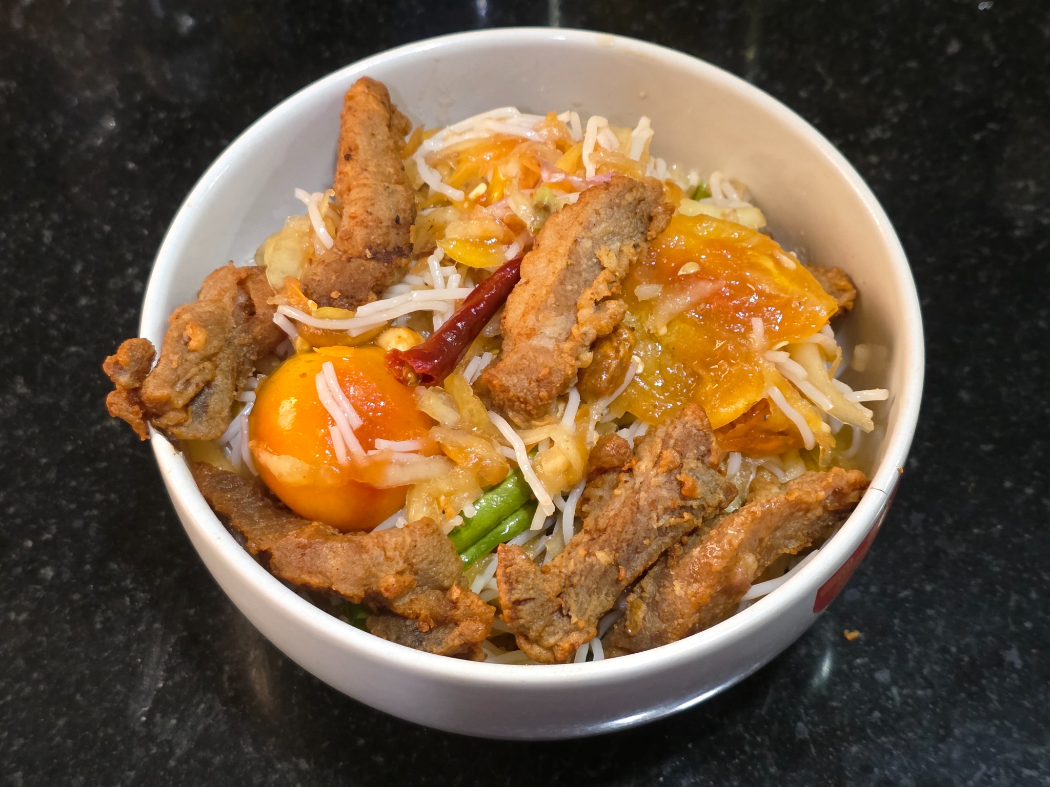 กลางวันนี้อยู่บ้านคนเดียว อากาศก็ครึ้มๆ เลยไม่อยากออกไปไหน เลยทำอาหารกินเองง่ายๆ คนเดียว เมนูง่ายๆ หมูสามชั้นทอดน้ำปลา และมะม่วงน้ำดอกไม้ ที่เพิ่งสอยมาจากต้นหน้าบ้านมาไม่กี่วัน หมูสามชั้นทอดน้ำปลา ท