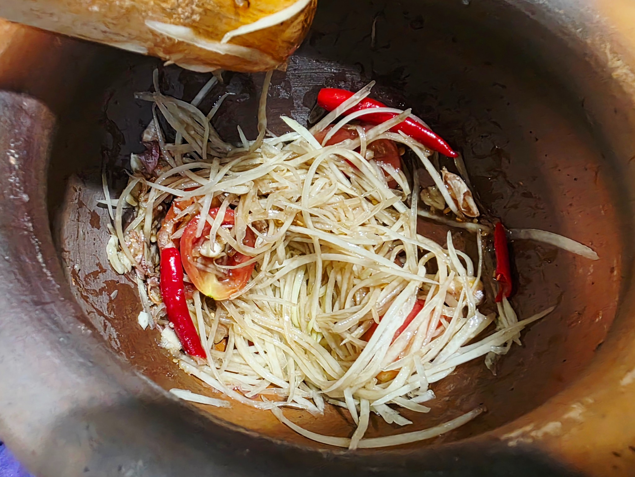สำหรับส้มตำก็ทำเป็นตำซั่ว แซ่บๆ เป็นส้มตำใส่ขนมจีน