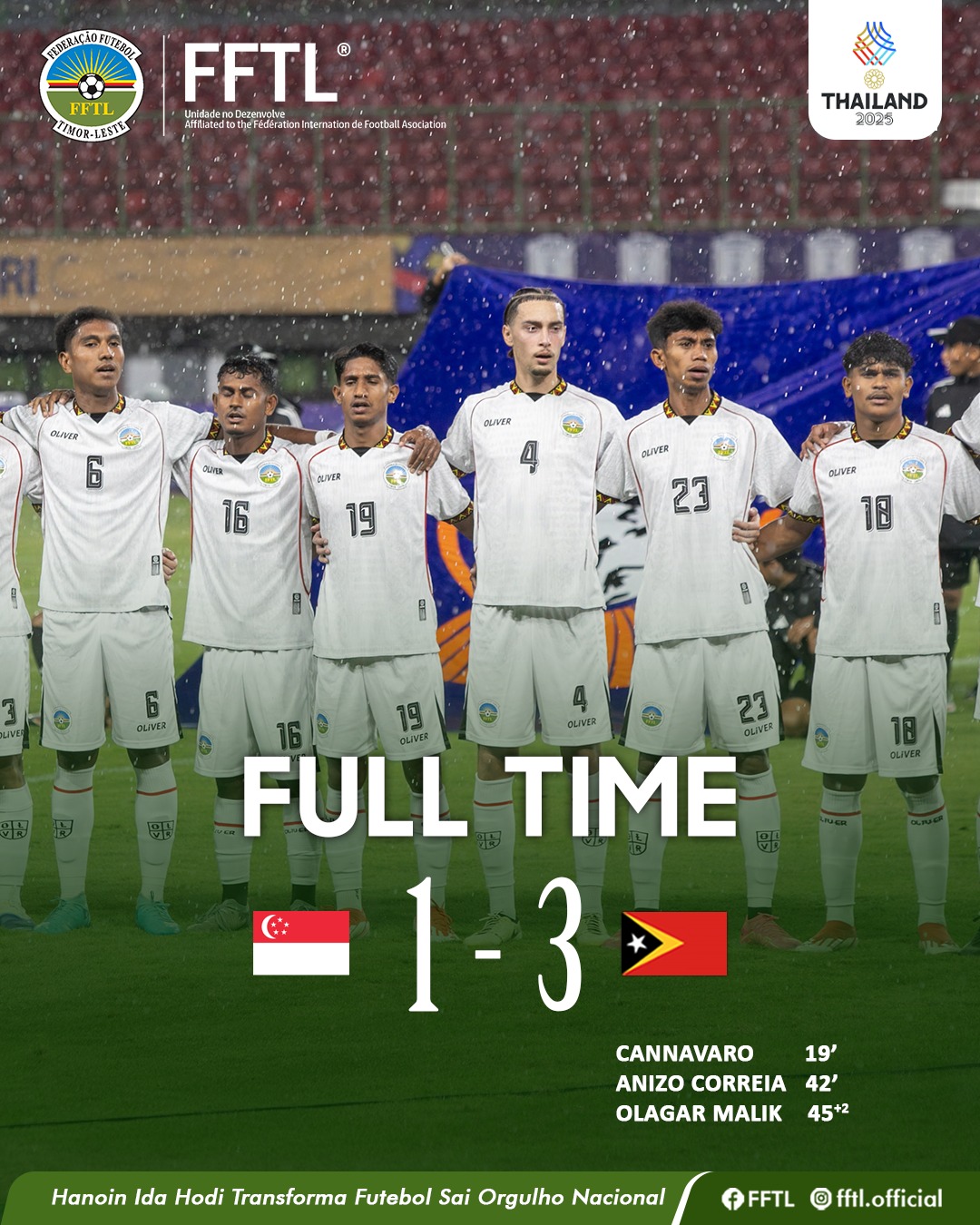 ดีใจกับติมอร์ที่ชนะได้ แต่ก็ยอมรับสิงคโปร์ที่กล้าส่งชุด u19 ลงหลายตัวเลย สิงคโปร์นี่คือเด็กอคาเดมี่เลย มาจากทีมเดียวกันแทบทั้งทีม ถ้านึกภาพไม่ออกมันจะทรงเดียวกับไทยU20ที่บุรีรัมย์ทำเป๊ะ