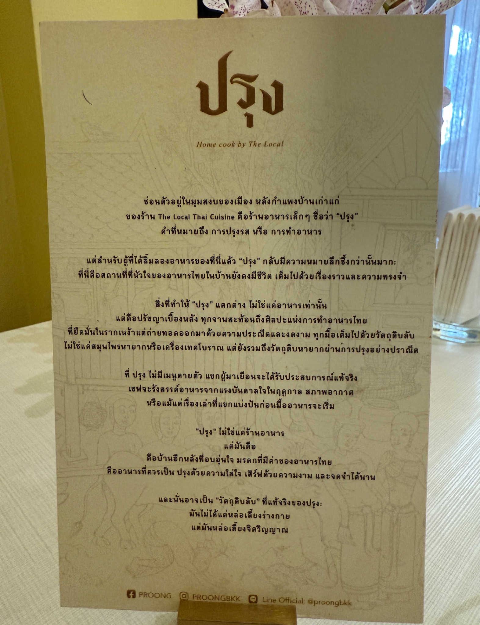ปรุง เป็นส่วนนึงของร้าน The Local by oamthong Thai cuisine ของคุณ ลักขณนาจ มาร์ควัฒน์ เจ้าของ ร้าน KinKao (กินข้าว) และ Crab and Claw ร้านซีฟูดดังในห้าง