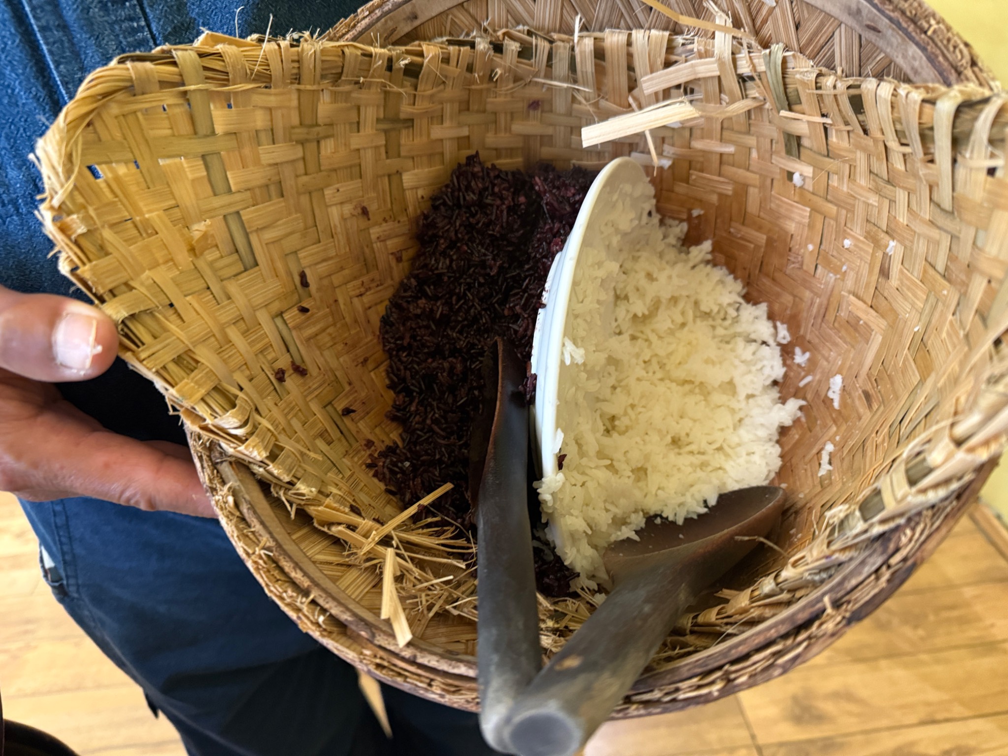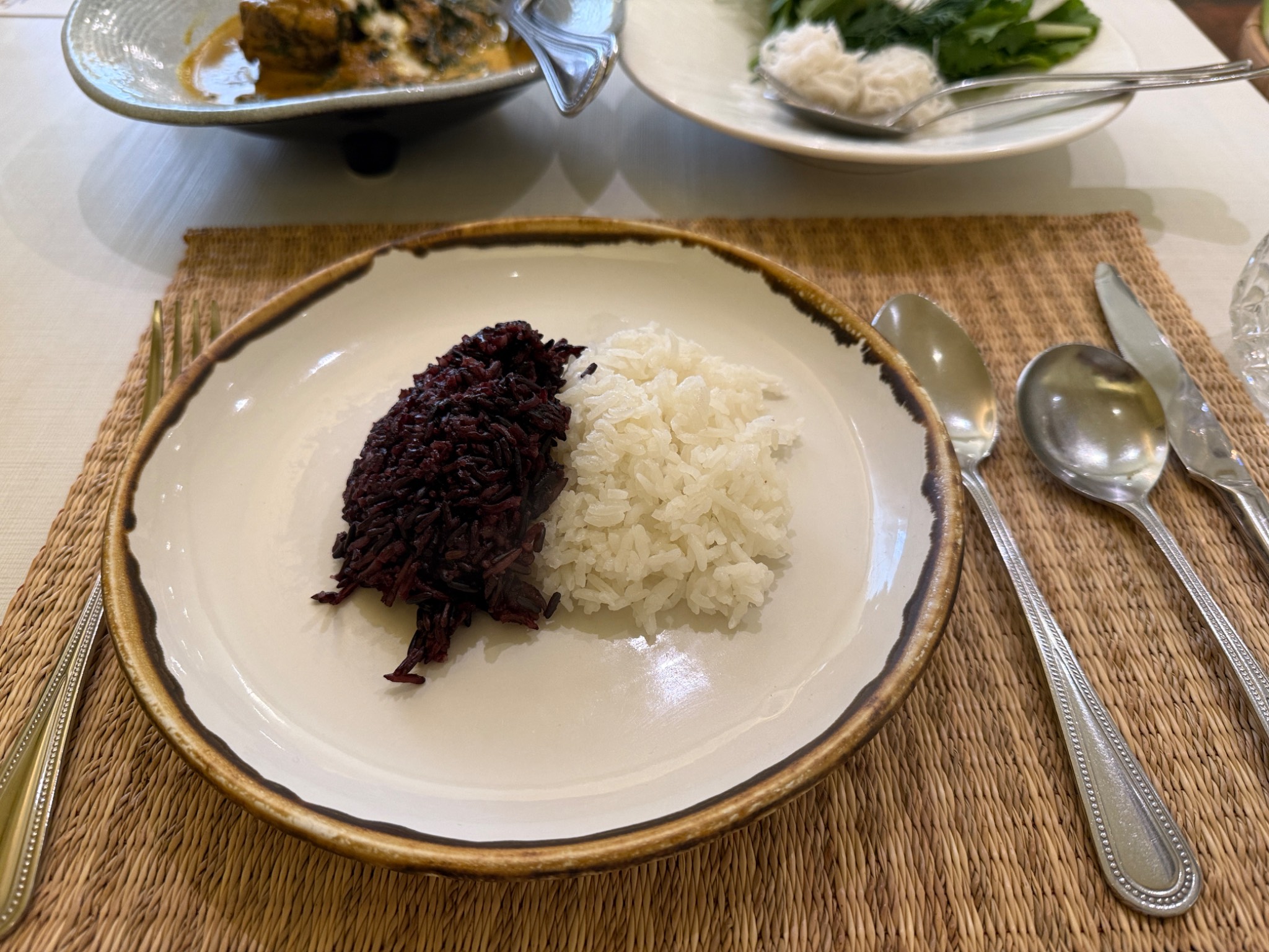 ส่วนข้าวเสริฟเติมให้ ตลอด เป็นข้าวหอมมะลิ และไรซ์เบอรี่ให้เลือกเติมตามชอบ