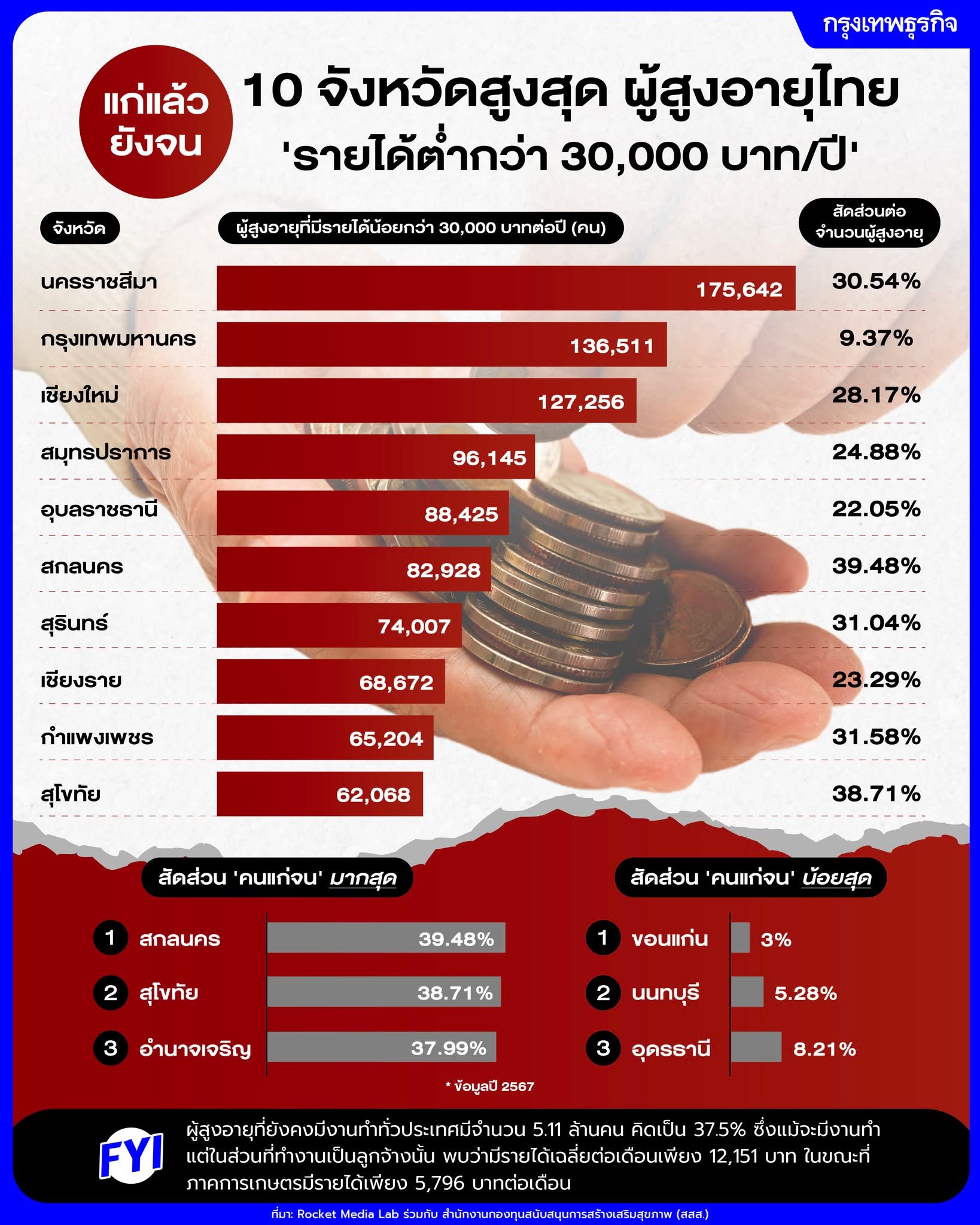 10 จังหวัดสูงสุด ผู้สูงอายุไทย 'รายได้ต่ำกว่า 30,000 บาท/ปี'