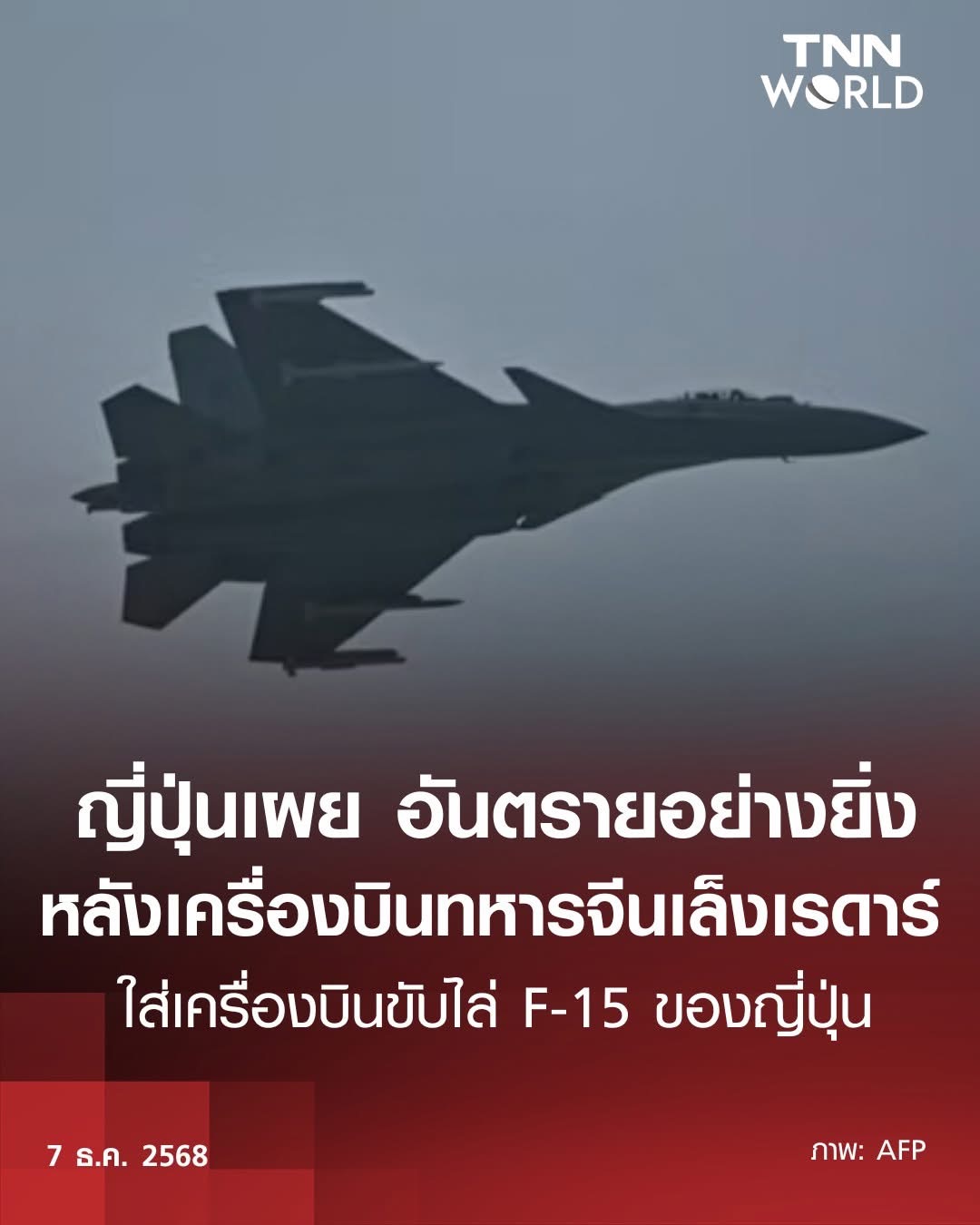 ญี่ปุ่นประณามจีน เครื่องบินทหารเล็งเรดาร์ใส่นักบินขับไล่ของญี่ปุ่น
