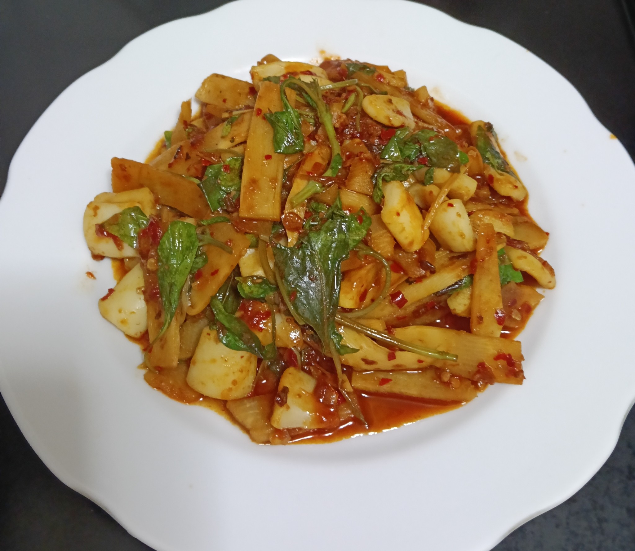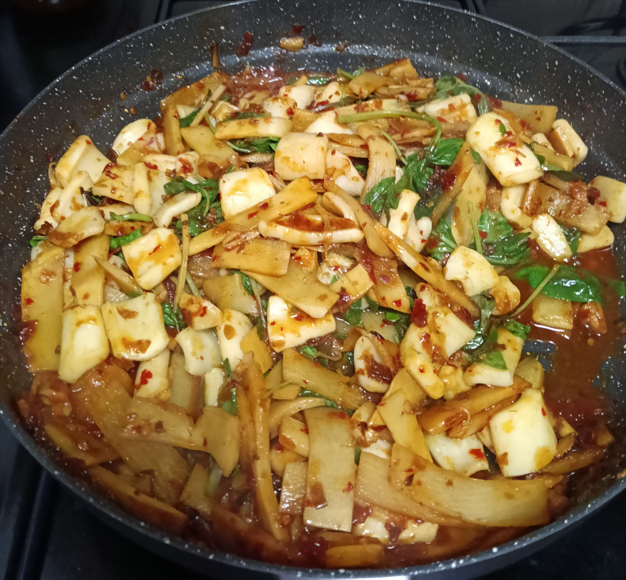 "ปลาหมึกผัดหน่อไม้น้ำพริกเผานางพญาร้อยชู้ " 🦑🦑🎍🎍🌶️🌶️🌶️🌶️