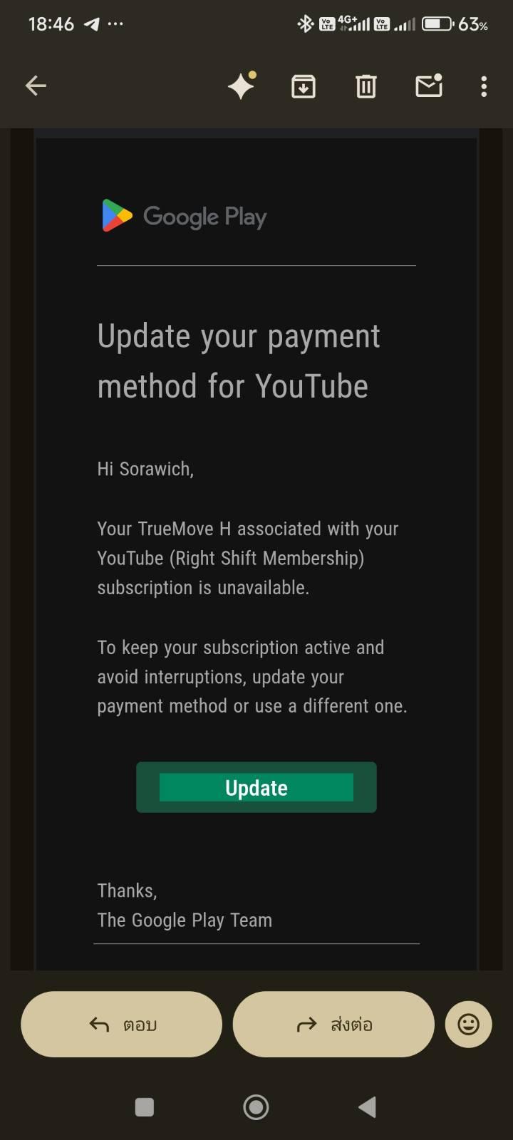 ปกติผมจะผูกพวก Subscription ต่างๆ ของ Google ไว้กับเบอร์ทรูเติมเงิน เพราะเวลาเติมเงินเข้าซิมจะได้สะสมทรูพอยท์ด้วย