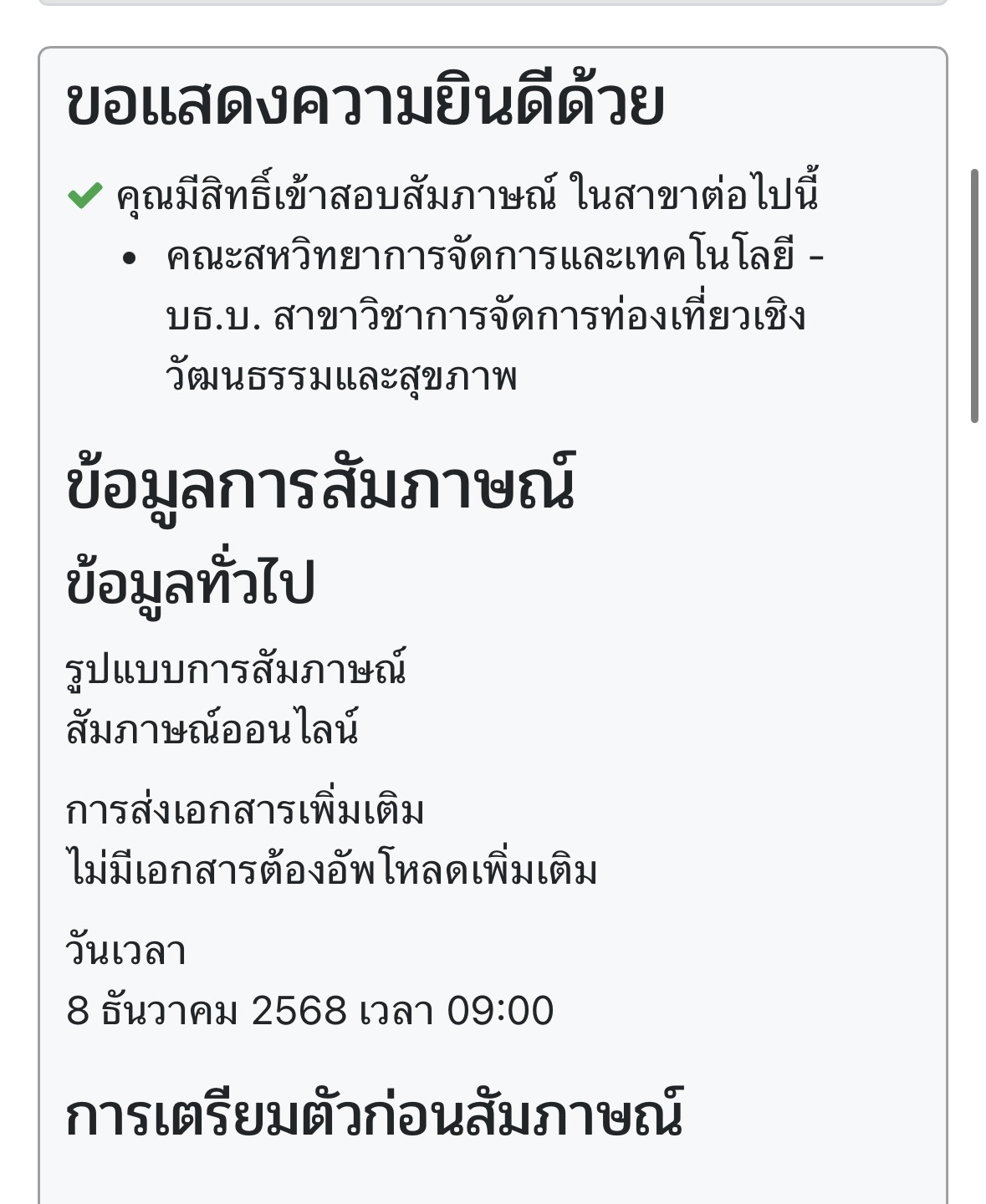 ขอแนวทางสัมภาษณ์สาขาวิชาการจัดการท่องเที่ยวเชิง วัฒนธรรมและสุขภาพ มอเกษตร #สัมภาษณ์