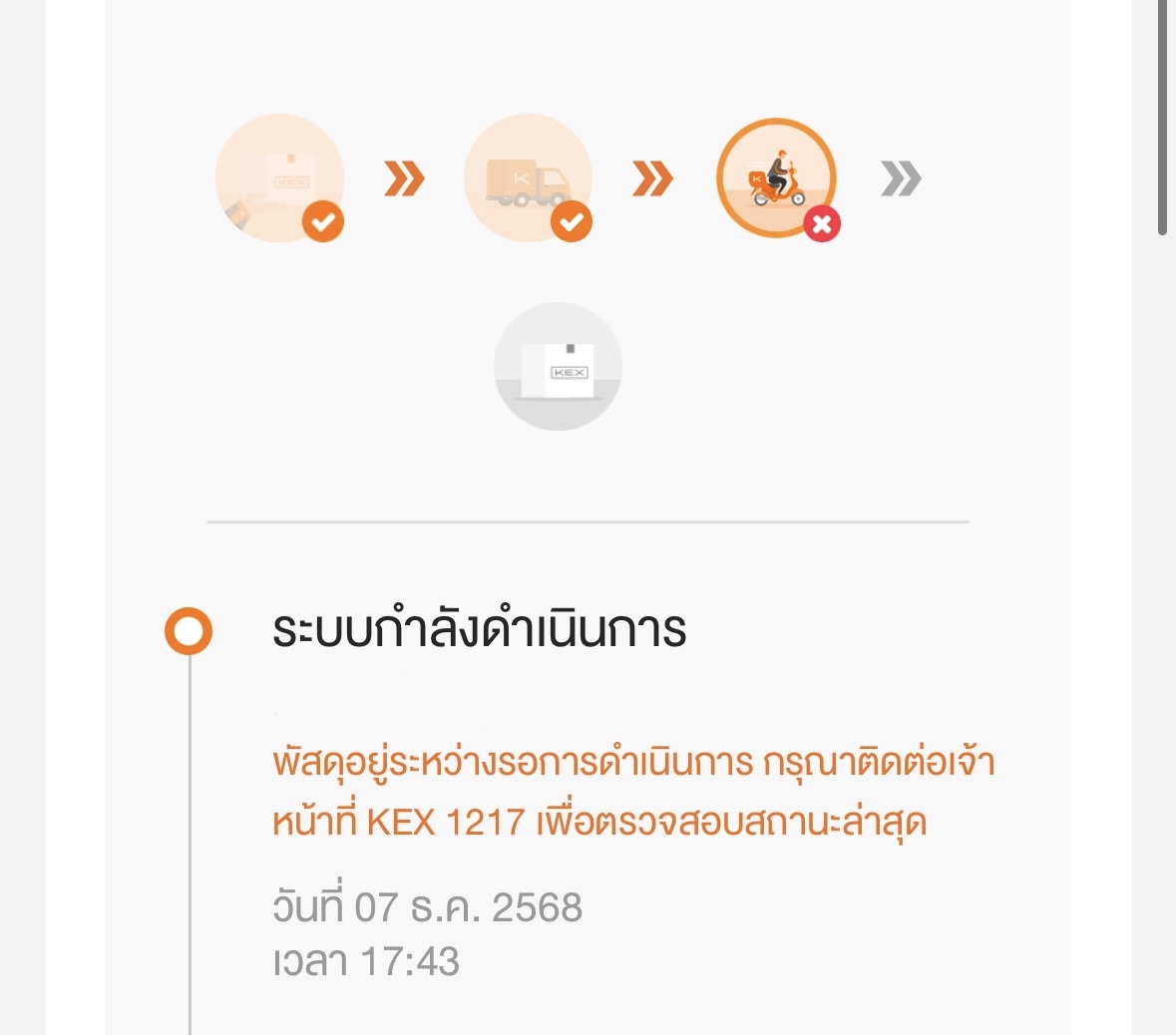 Kerry ขึ้นระบบกำลังดำเนินการให้ติดต่อเจ้าหน้าที่เพื่อตรวจสถานะล่าสุดคืออะไรคะ
