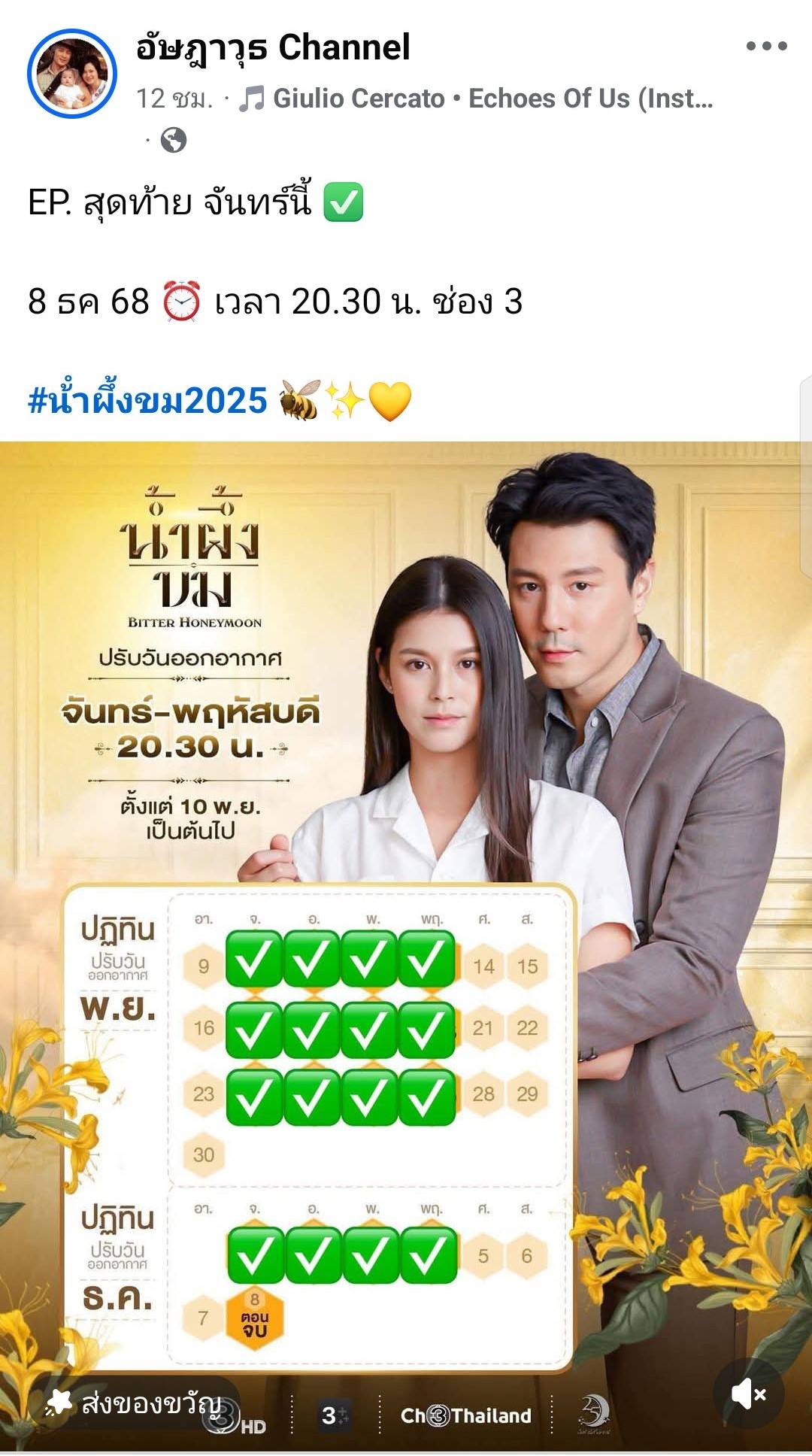 ✅ หวานเป็นลม ขมเป็นยา 🐝✨💛 #น้ำผึ้งขม ตอนจบ 📌 8/12/68 เวลา 20.30 น. #ดูทีวีกด33 📺