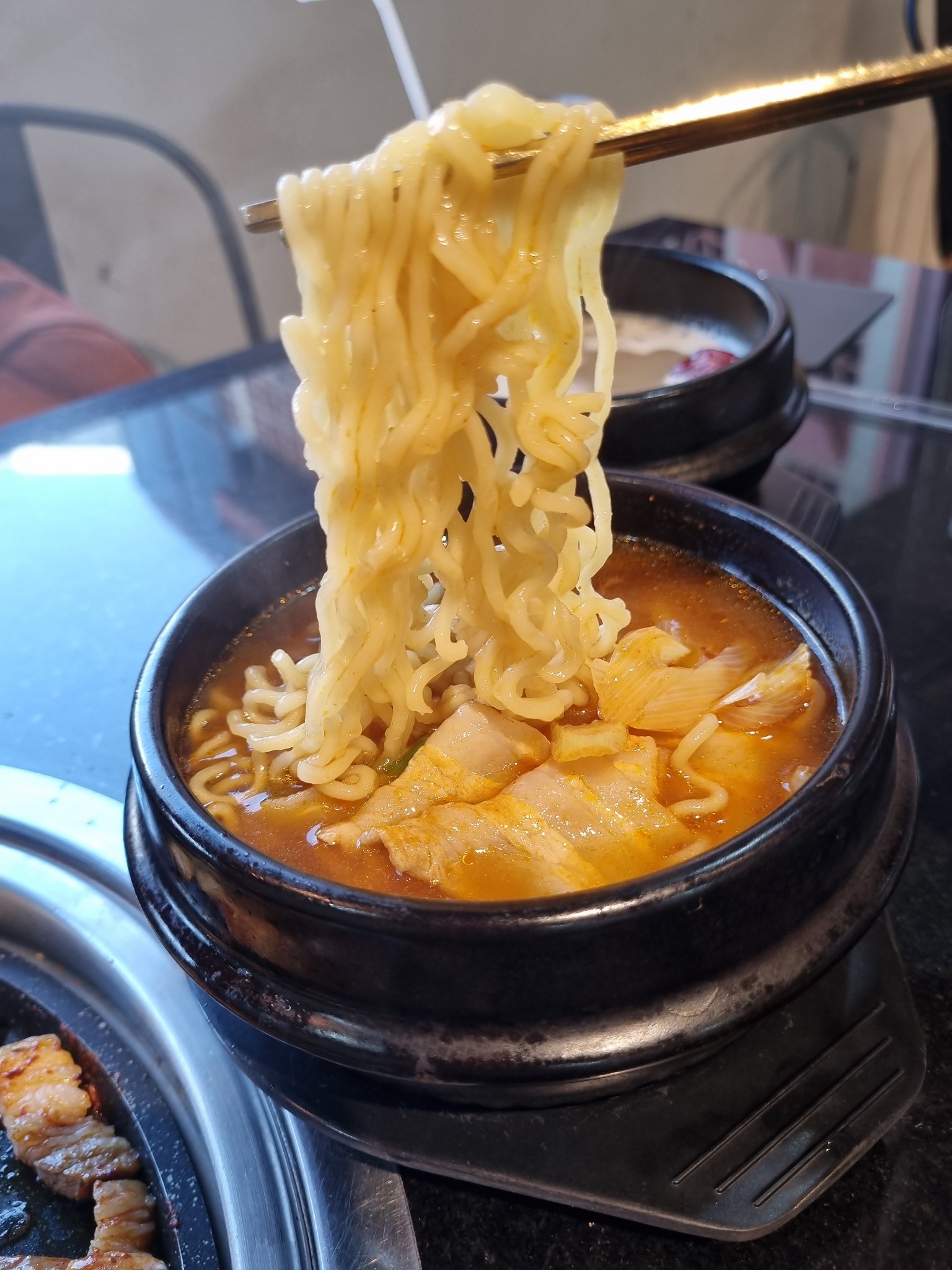 และเส้นรามยอนที่หนึบลื่นปาก ใบงาโอเคมากๆ ไม่ขมเหมือนเจ้าอื่นส่วนพวกซุปที่ให้ตักเองบนบาร์กับหมูผัดจานท้ายนั้น ไม่ค่อยเลิศเท่าไหร่นัก