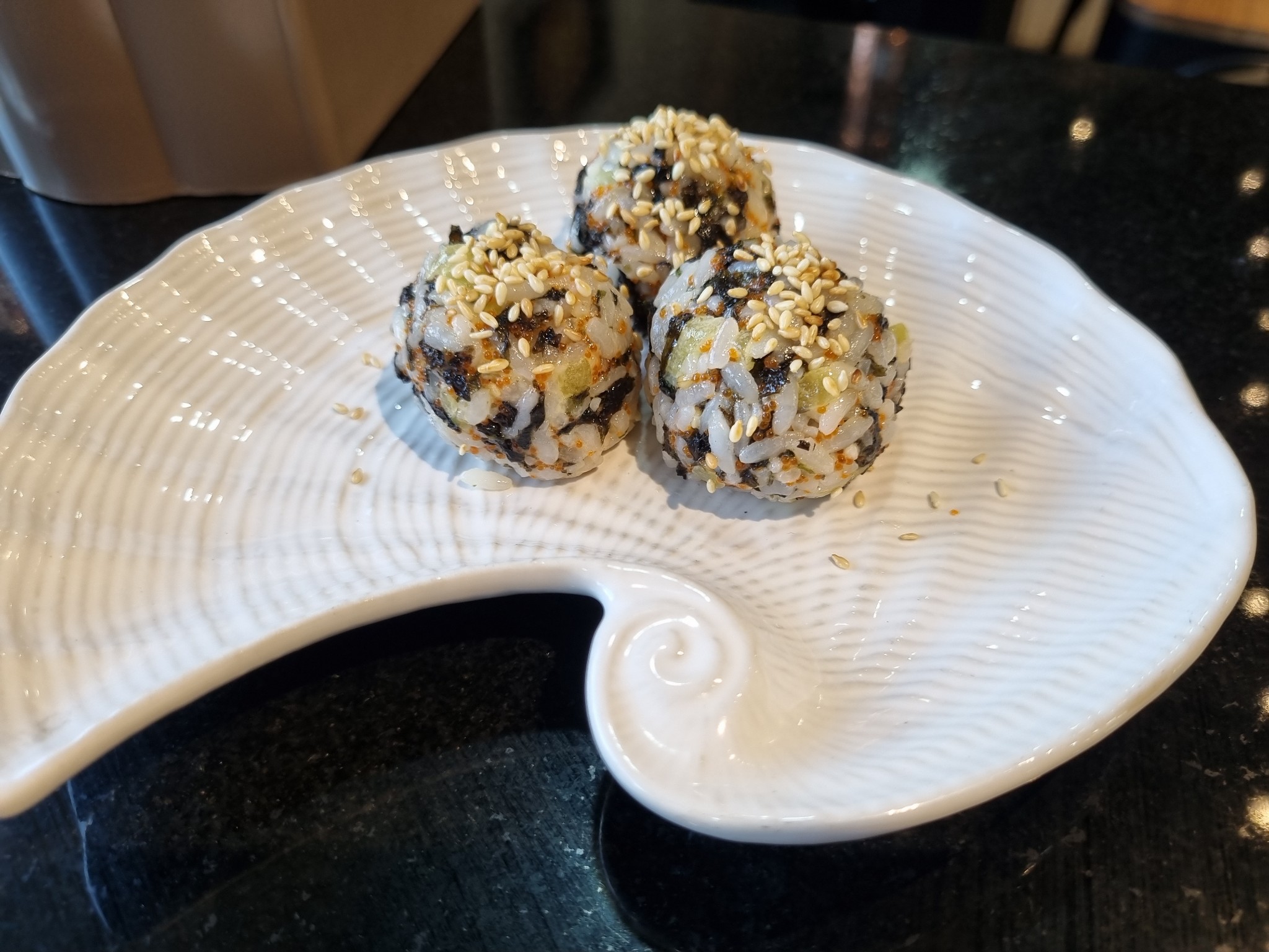 หวานและมันๆครีม นอกจากข้าวโพดกับสาหร่ายแล้วก็ยังมี ไข่กุ้งและผักกาดดองสับ เพิ่มความกรุบกรอบ เสียดายที่น้ำมันงาคลุกน้อยไป