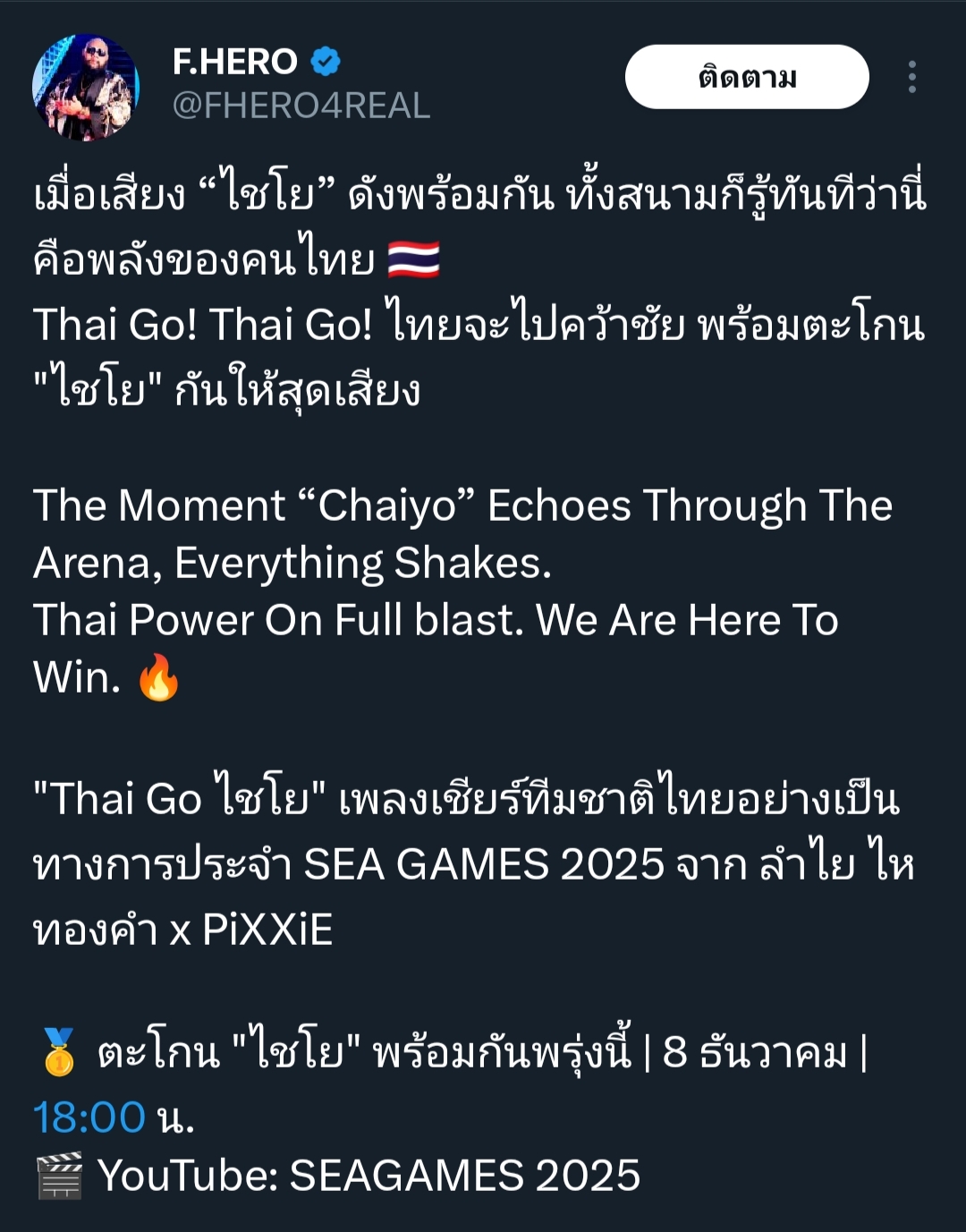 คุณพระ ซีเกมส์เริ่มพิธีเปิดวันที่9 ปล่อยเพลงโปรโมทวันที่8เย็น