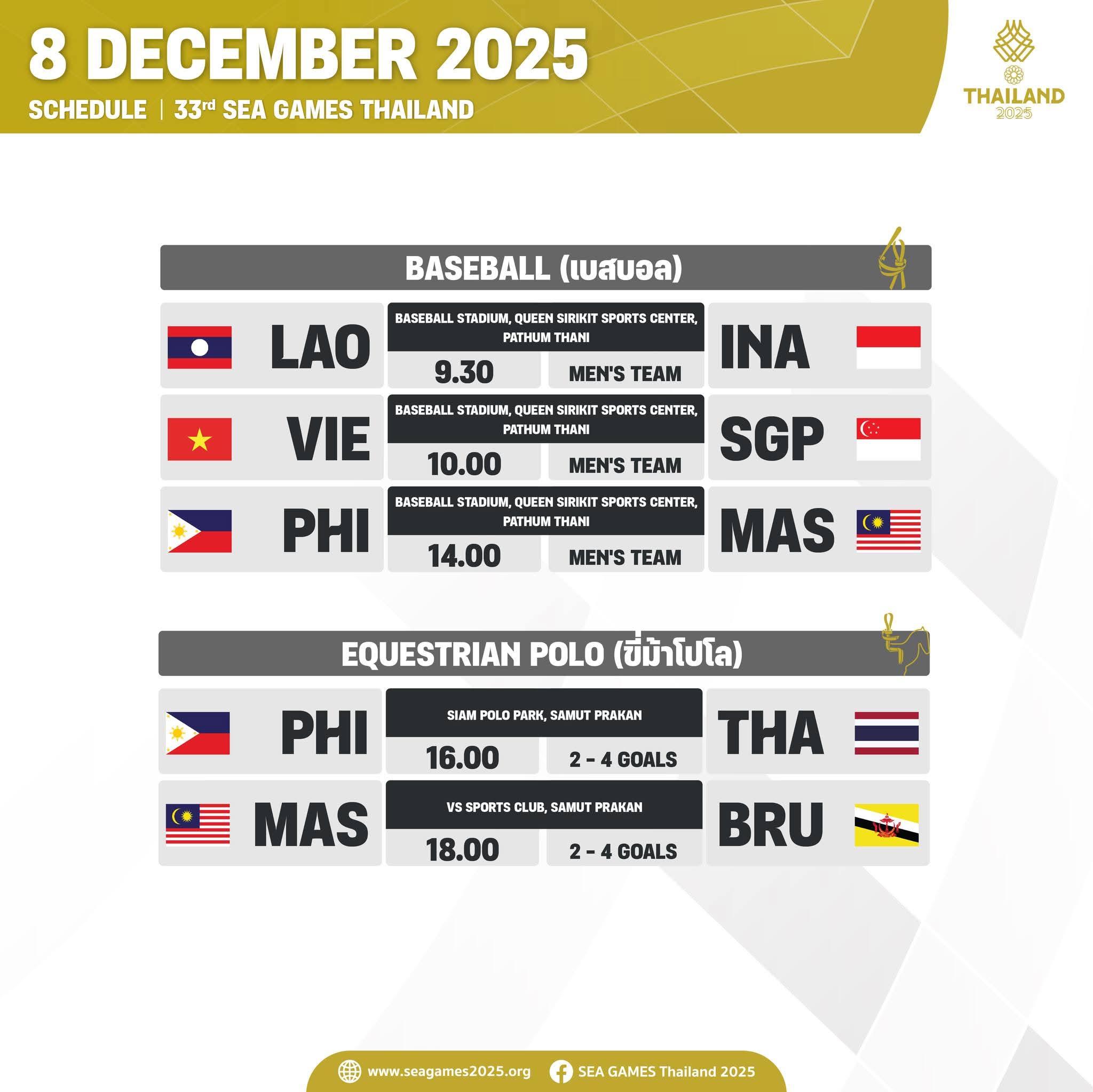 โปรแกรมการแข่งขันซีเกมส์8ธ.ค