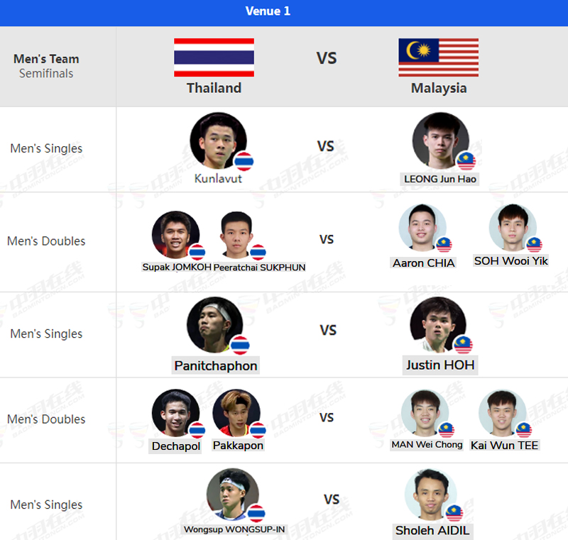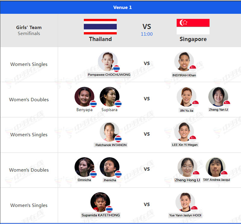 โปรแกรมการแข่งขัน แบดมินตัน SEA Games 2025 ประเภททีมชาย & ทีมหญิง: รอบรองชนะเลิศ (8 ธ.ค. 68) (คู่แรก 10.00 น.)