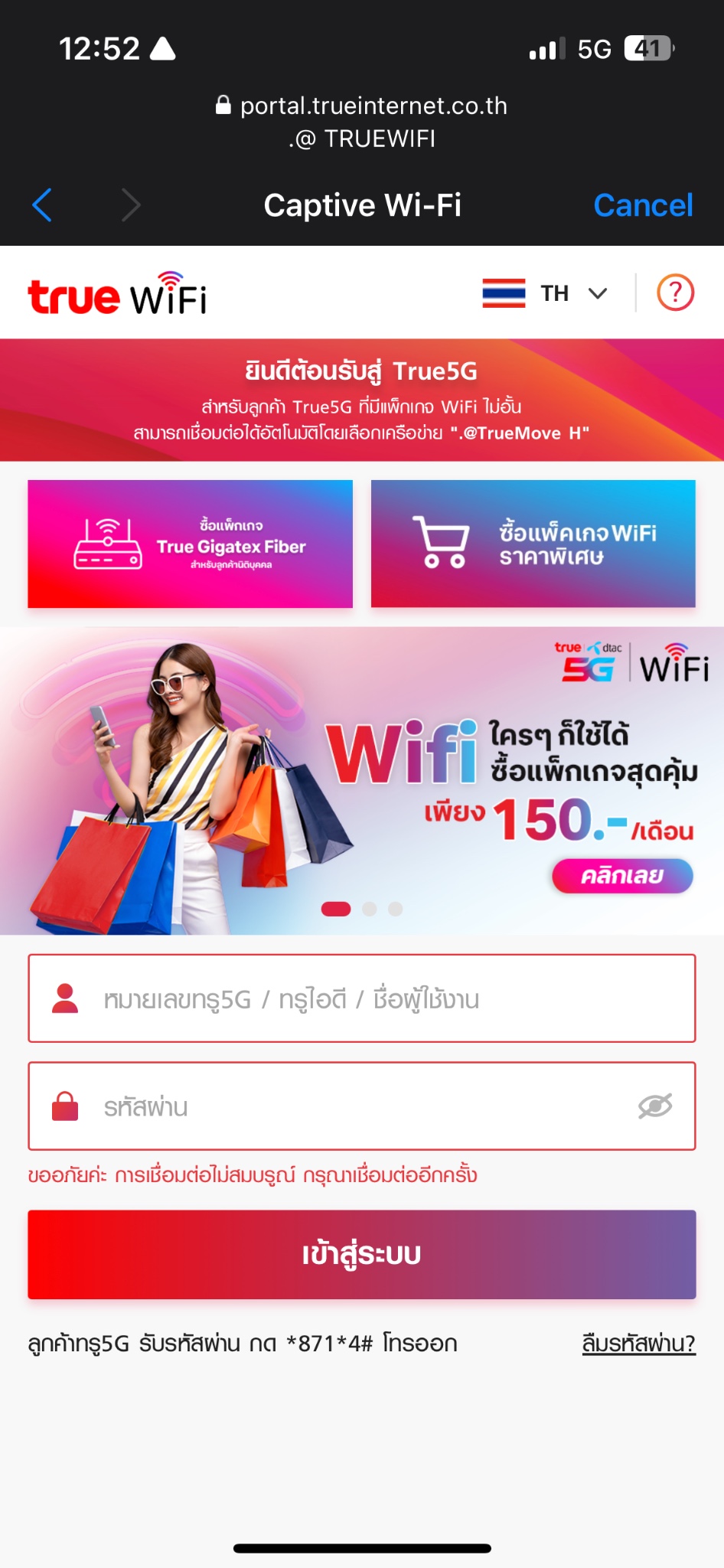 ไปข้างนอกแล้วเชื่อม @truewifi ไม่ได้ ไม่ขึ้นนหน้า log in ไม่ทราบว่าต้องแก้ไขอย่างไงครับ