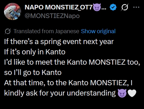 ล่าสุดในคอนเมื่อคืน อายอนก็ใบ้มาแล้วว่าฤดูใบไม้ผลิปีหน้า เจอกันที่คันไซนะ แบบนี้ก็ชัดเจนว่ารอบหน้ามีลุ้นเปิดคอนญี่ปุ่นกันที่โตเกียวโดมแน่ๆ