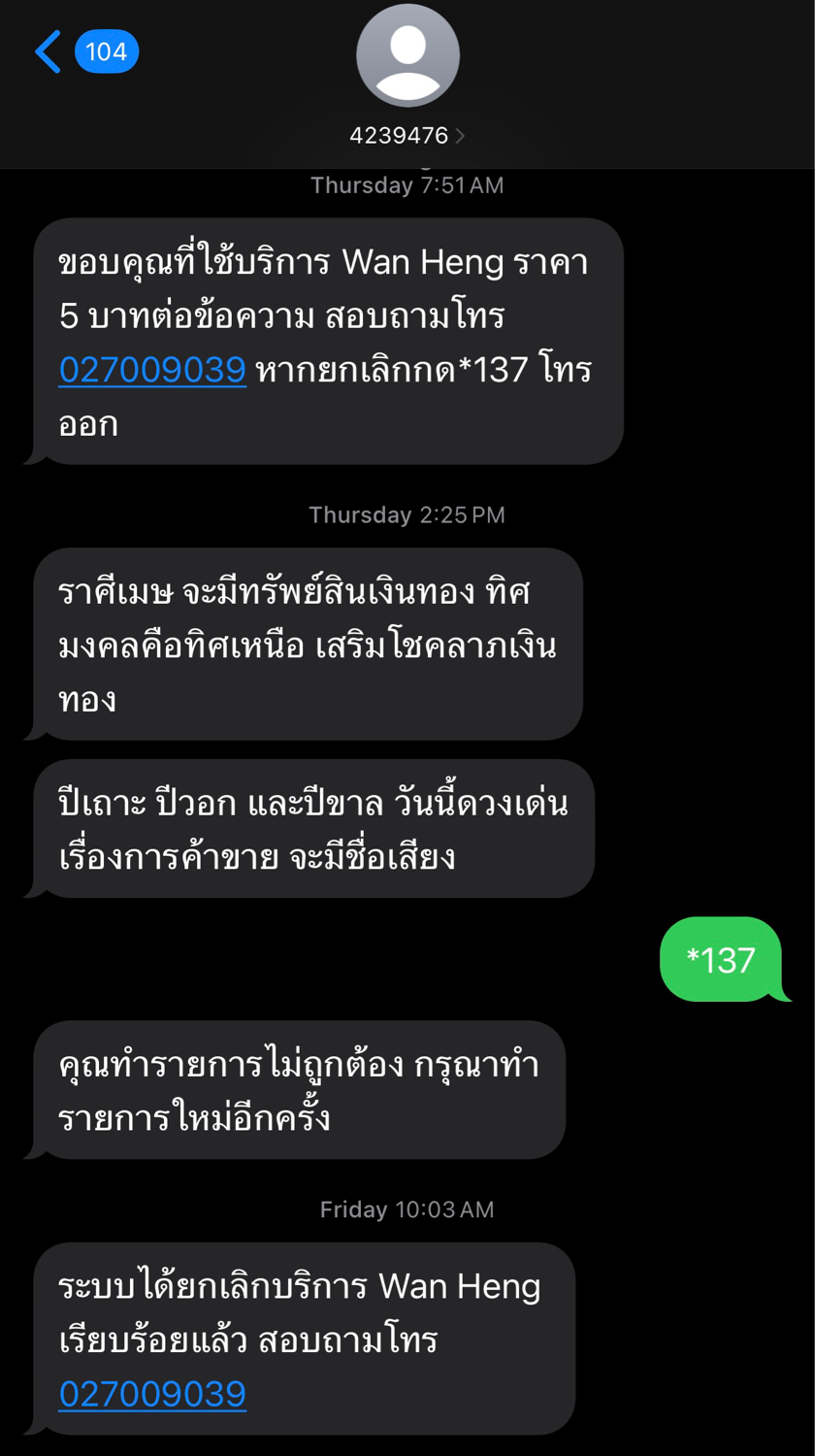 หมายเลขนี้มีข้อความเข้ามาบ่อย คือบริการอะไรของdtac รบกวนยกเลิกด้วยค่ะ