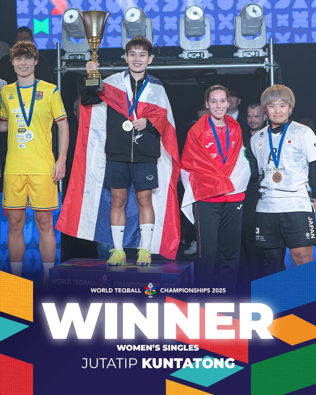 ตอกย้ำความสำเร็จ ทีมชาติไทยโชว์ฟอร์มสุดปัง กวาด 2 เหรียญทอง 2 เหรียญเงิน และ 1 เหรียญทองแดง ในศึก World Teqball Championships 2025 ที่ประเทศโรมาเนีย